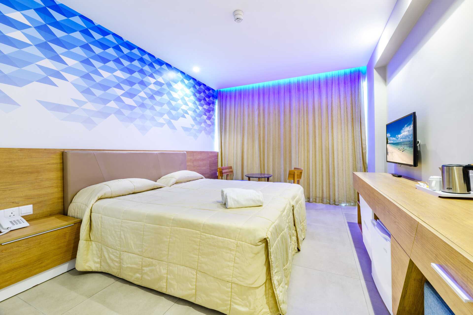 Deluxerom med balkong, noen med bassengutsikt. En dobbeltseng eller to enkeltsenger. Mulig med ekstraseng i feltseng. Wifi, luftkondisjonering og safe inkludert. Kjøleskap. Vannkoker samt kaffe og te. TV. Strykejern og strykebrett. Hårføner. Dusj og wc. Rengjøring 7 ggr/uke.
