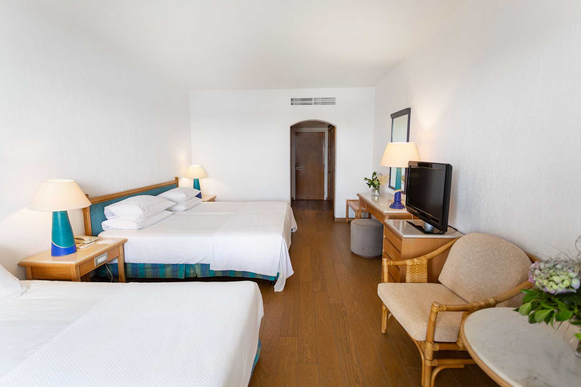 Dobbeltrom med balkong. Noen balkonger har havutsikt eller begrenset havutsikt. En dobbeltseng og en enkeltseng. Mulig med en ekstraseng i sovesofa. Wifi, luftkondisjonering og safe inkludert. Minibar mot avgift. Vannkoker samt kaffe og te. TV. Hårføner. Bad med dusj og wc. Rengjøring 7 ggr/uke. Barn under 2 år regnes inn i maksantallet i rommet.