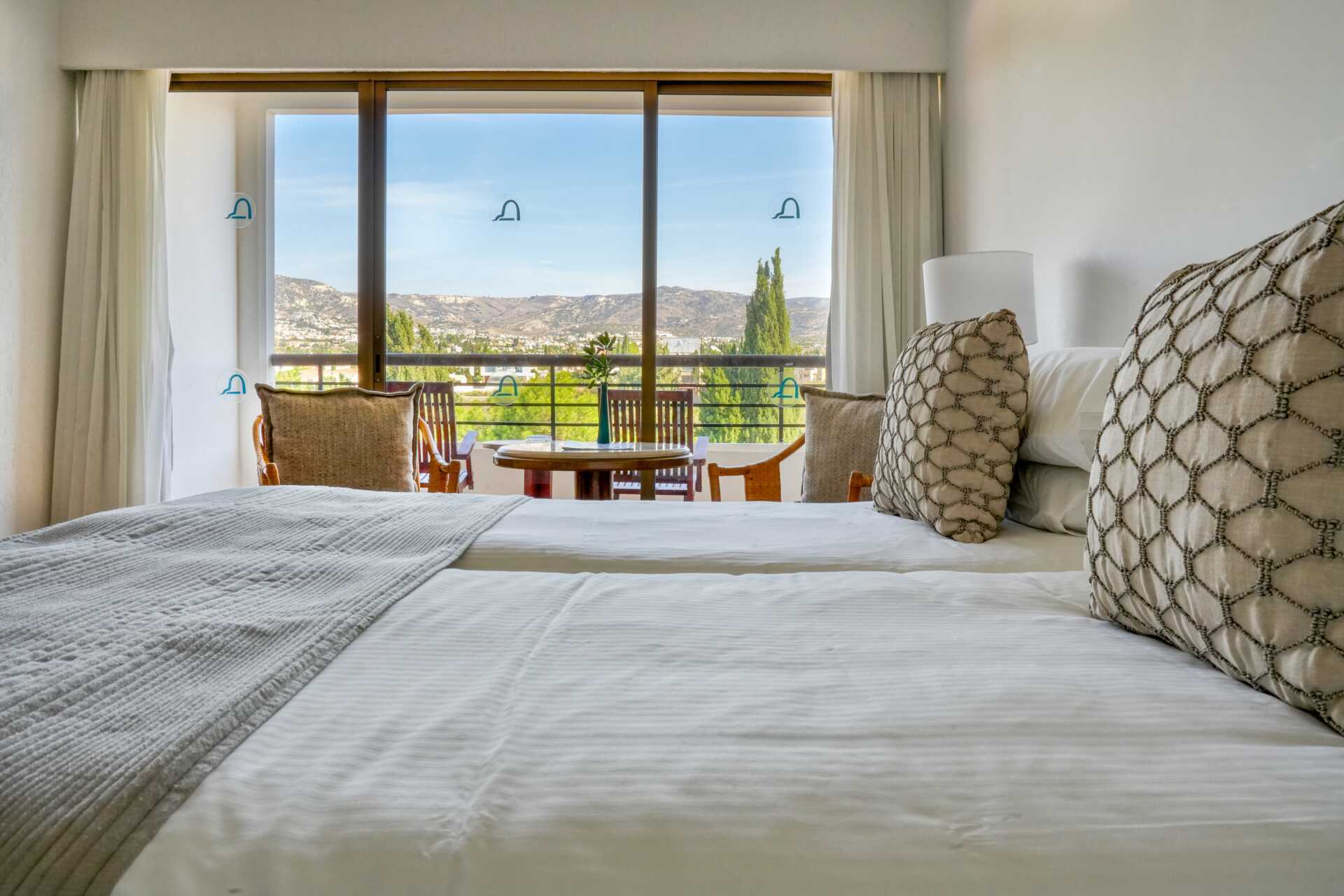 Garden Room med markterrasse. På terrassen er det to solsenger og et bord med stoler, hagen ligger rett utenfor. En dobbeltseng eller to enkeltsenger. Mulig med ekstrasenger i to sovesofaer. Ett eller to trappetrinn inne i leiligheten. Wifi, luftkondisjonering og safe inkludert. Takvifte. Minibar mot avgift. Vannkoker samt kaffe og te. TV. Hårføner. Bad med dusj og wc. Rengjøring 7 ggr/uke. Barn under 2 år regnes inn i maksantallet i rommet.