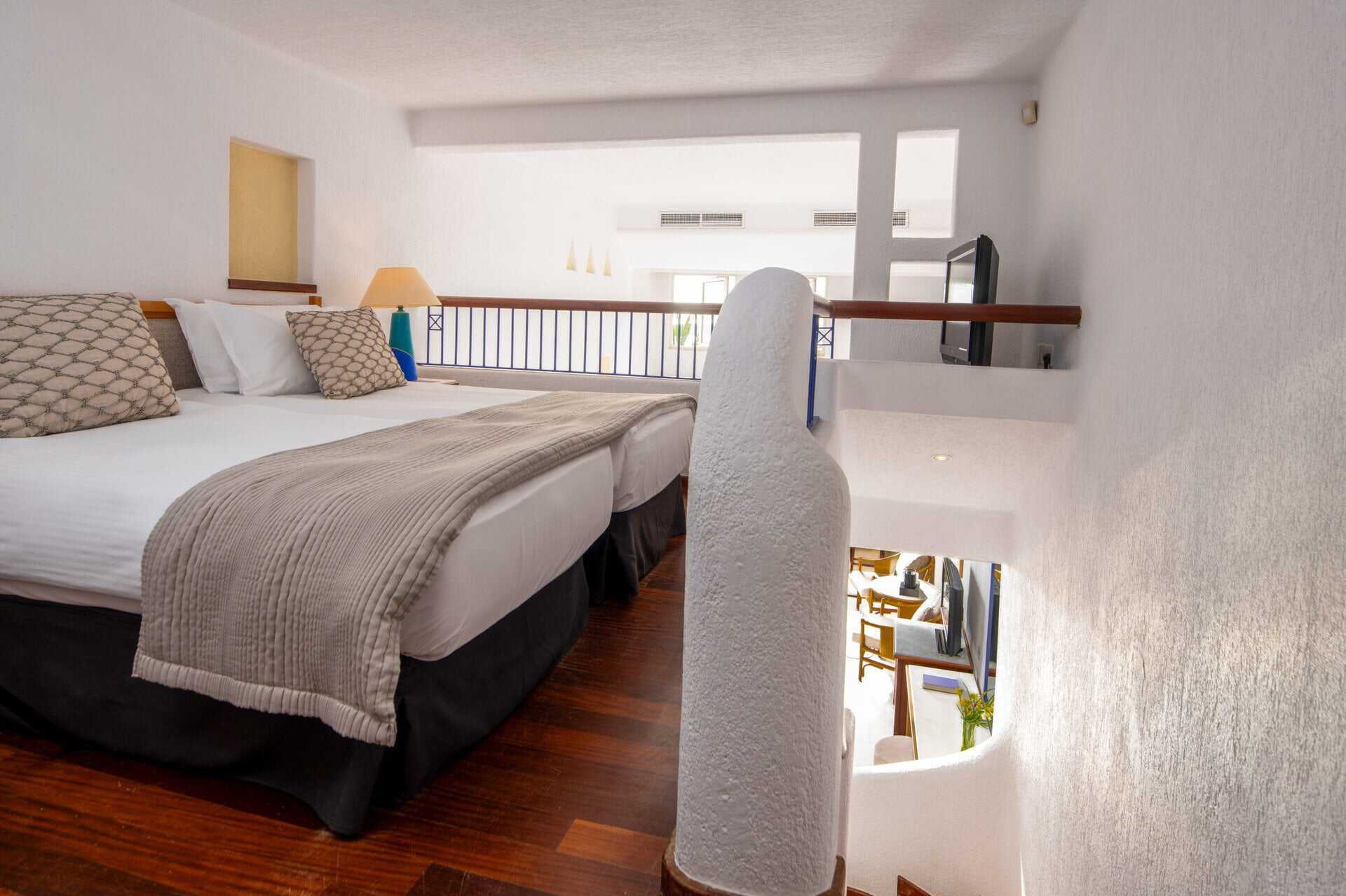 Familierom med balkong og havutsikt. I inngangsetasjen er det stue med balkong, to enkeltsenger, sovesofa, TV med internasjonale kanaler og bad med hårføner, badekar og wc. En trapp opp er det sovehems med to enkeltsenger, TV og bad med hårføner, badekar og wc. Wifi, luftkondisjonering og safe inkludert. Minibar mot avgift. Vannkoker samt kaffe og te. Rengjøring 7 ggr/uke. Barn under 2 år regnes inn i maksantallet i rommet.
