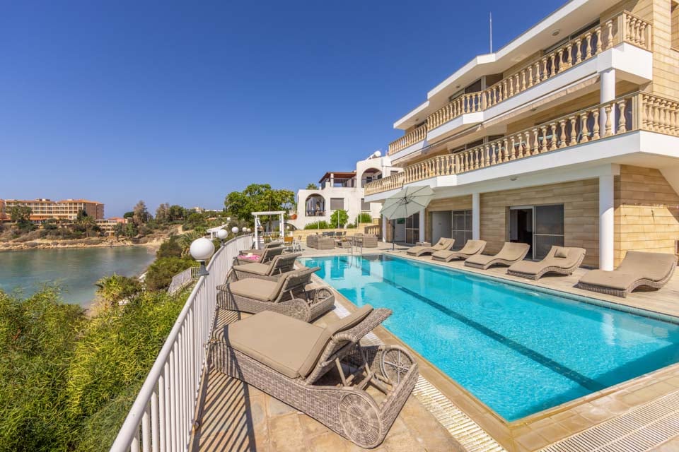 Med fantastiske rustikke steinfasader, tradisjonell kypriotisk sjarm og terrakottarøde tak, føles Katina Beach Villa som tatt rett ut av et postkort. Interiøret taler for seg selv; romslig og elegant designet med en beroligende fargepalett av hvitt og beige, som utstråler en følelse av salig ro. De store glassvinduene og -dørene oversvømmer rommet med naturlig sollys, slik at gjestene kan nyte det vakre landskapet i hvert hjørne. I første etasje er det en stor åpen stue og spisestue, med nok plass til at hele familien kan strekke seg ut og slappe av. Kjøkkenet er toppmoderne, med vakre treskap og fullt utstyrt med de nyeste hvitevarene. For litt ekstra luksus finnes det til og med et spillrom med ditt eget private treningsstudio, bordtennisbord og biljardbord. Følg den store trappen opp, hvor du finner fem soverom med dobbeltseng og to soverom med to enkeltsenger.