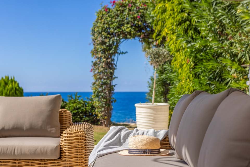 Våkn opp til balkongutsikt med vidstrakt havutsikt. Når du først har nytet morgenkaffen din til en sensasjonell utsikt som denne, vil du knapt ønske å dra hjem. Denne delen av paradiset er din inngangsport til ren lykke. Tilbring late dager ved bassengkanten på den komfortable solsengen din. Alt du trenger er solbriller, hodetelefoner for de viktige feriespillelistene og rikelig med solfaktor for å beskytte deg mot den stekende solen. Ta hyppige dukkerter i det avslappende vannet i ditt private basseng, eller kos deg og plask rundt – du vil ha forelsket deg i det avslappede livet før kvelden i det hele tatt kommer. Og når kvelden kommer, vil den vanskeligste avgjørelsen være om man skal samles rundt det nydelige spisebordet eller ta det med ut utendørs for en middagsopplevelse under et stjerneteppe. Hvis du får sjansen, midt i prat fra dine kjære, ta et øyeblikk til å sette pris på den beroligende lyden av bølgene mens du nyter deilige kypriotiske herligheter.