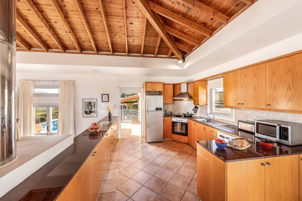 Hvis du kan gå innendørs, finner du moderne interiør og en åpen stue og kjøkken. Villaen har tre soverom med klimaanlegg, hvorav to er tomannsrom for å maksimere gjestekombinasjonene.