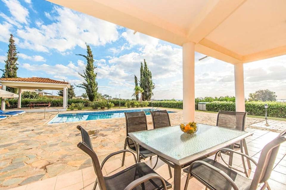 Innvendig er villaen stor, med åpen planløsning og myke møbler. Kjøkkenet er fullt utstyrt med treskap fylt med viktige redskaper, et høyt kjøleskap med fryser og en oppvaskmaskin for å gjøre rengjøringen av gryter og panner litt enklere. Med fire soverom og tre bad er denne villaen et flott alternativ for opptil åtte gjester.