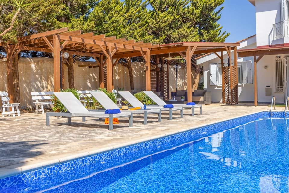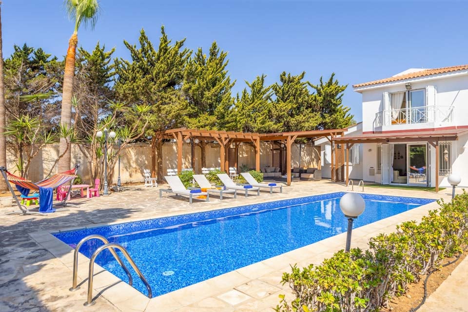 Velkommen til Apollon Seaside, en nydelig villa med 5 soverom og 4 bad, perfekt beliggende bare en kort spasertur fra de gylne strendene, livlige barer, restauranter og butikkene i Protaras sentrum. Denne villaen tilbyr en perfekt blanding av komfort, stil og bekvemmelighet, og er et ideelt valg for familier og grupper som søker en solfylt ferie på Kypros.