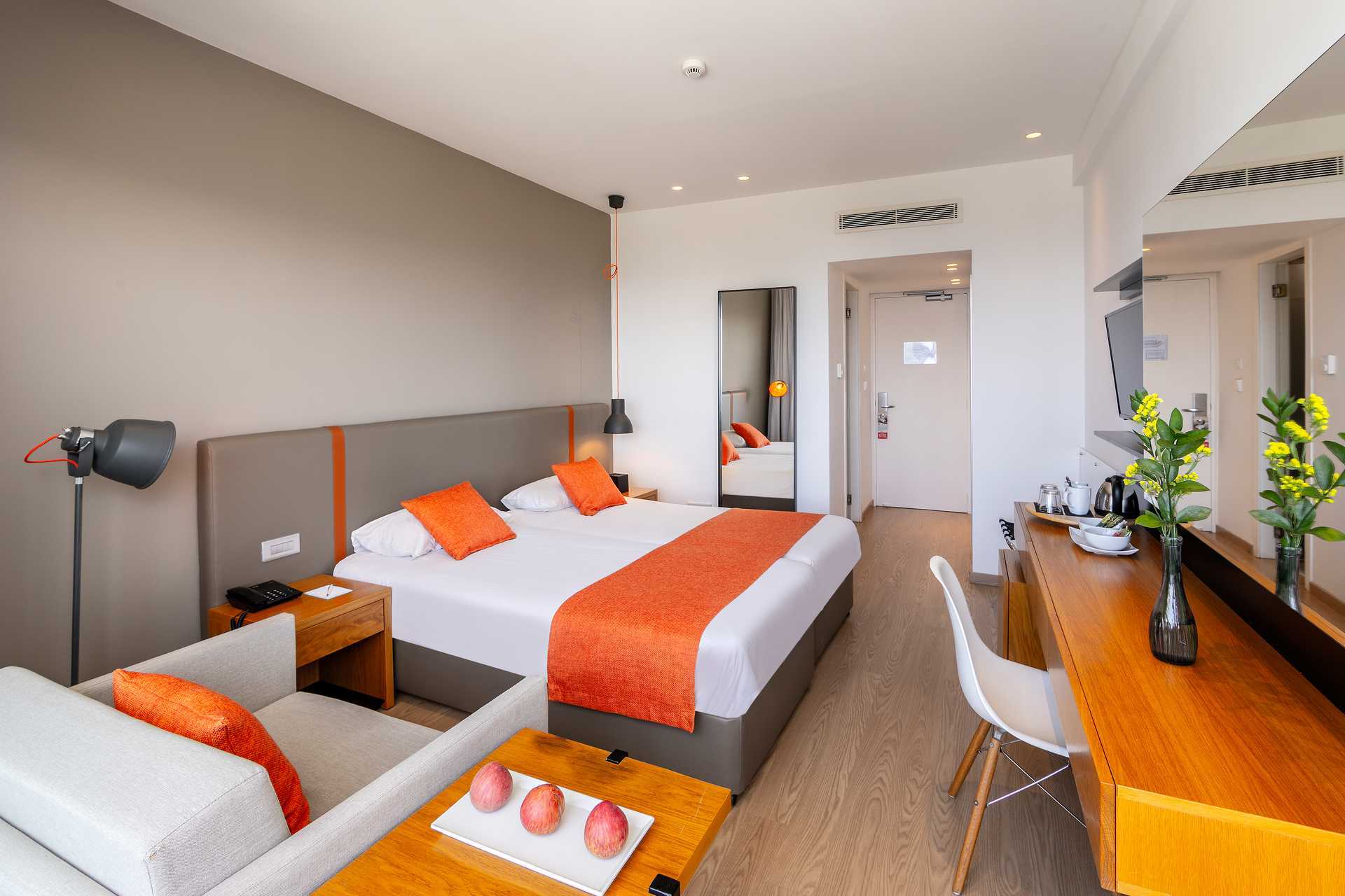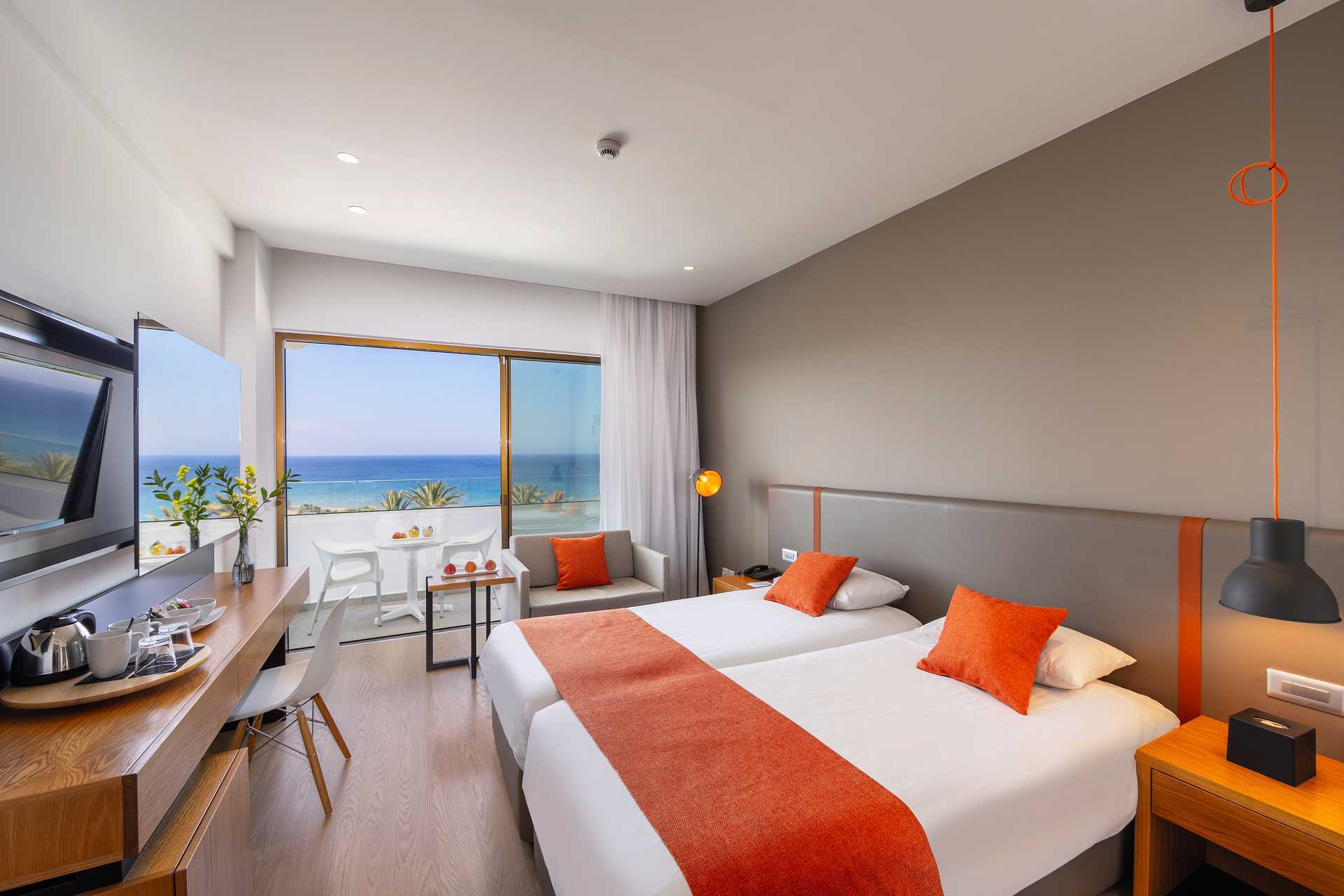 Superiorrom med balkong og havutsikt eller begrenset havutsikt. En dobbeltseng eller to enkeltsenger. Mulig med ekstraseng i sovesofa. Putemeny. Wifi, luftkondisjonering og safe inkludert. Lite kjøleskap. Vannkoker samt kaffe og te. TV. Strandveske Badekåper og tøfler. Hårføner. Dusj eller badekar samt wc. Rengjøring 7 ggr/uke. Barn under 2 år regnes inn i maksantallet i rommet.