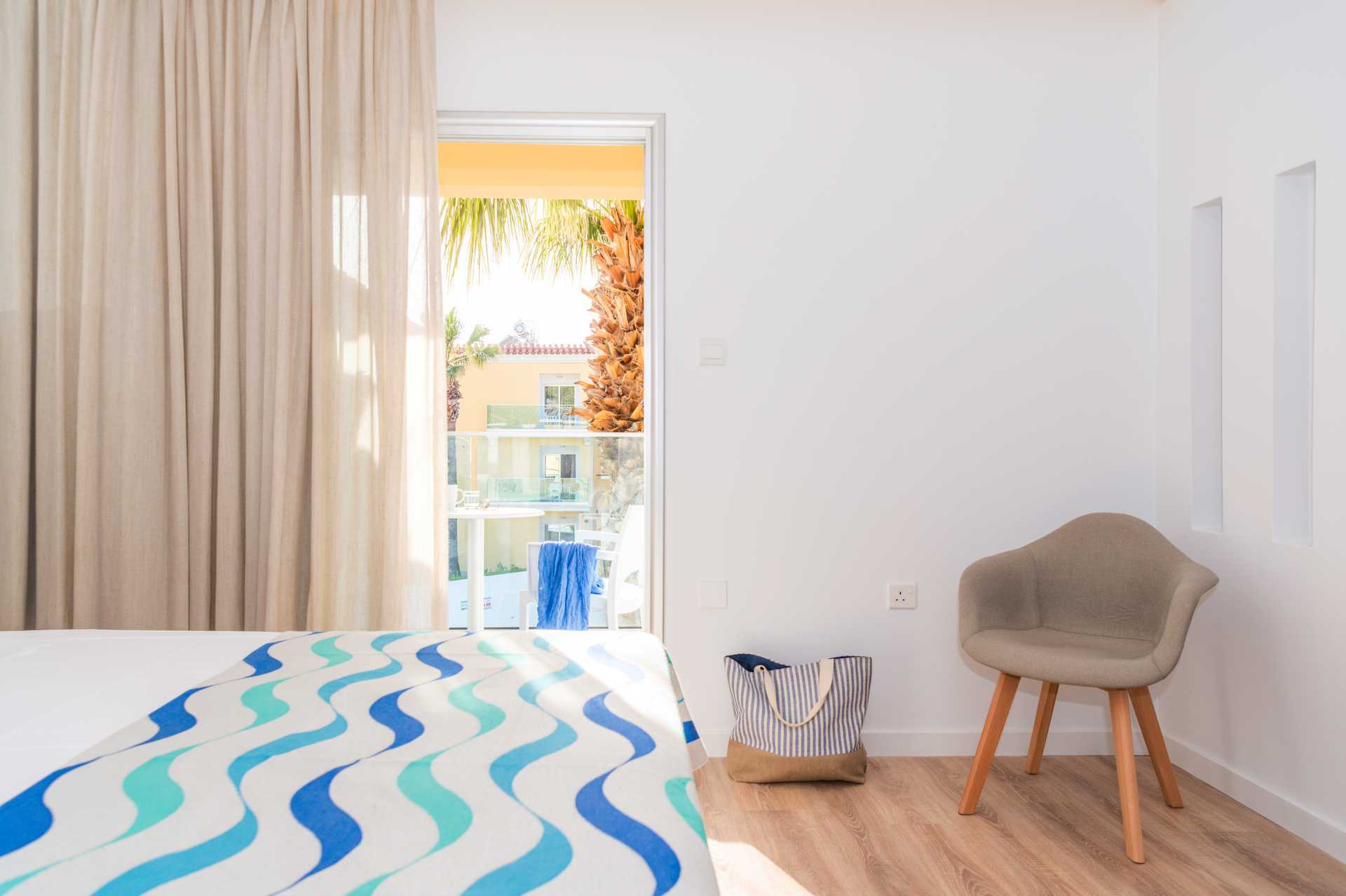 Treromsleilighet med balkong eller terrasse. To soverom og en stue kombinert med minikjøkken. Et soverom med dobbeltseng og et soverom med to enkeltsenger. Mulig med en ekstraseng i sovesofa. Minikjøkken med kokeplater, kjøleskap, mikrobølgeovn, vannkoker og enkelt kjøkkenutstyr. Wifi, luftkondisjonering og safe inkludert. TV. Hårføner. To bad med badekar eller dusj samt wc. Rengjøring 6 ggr/uke.