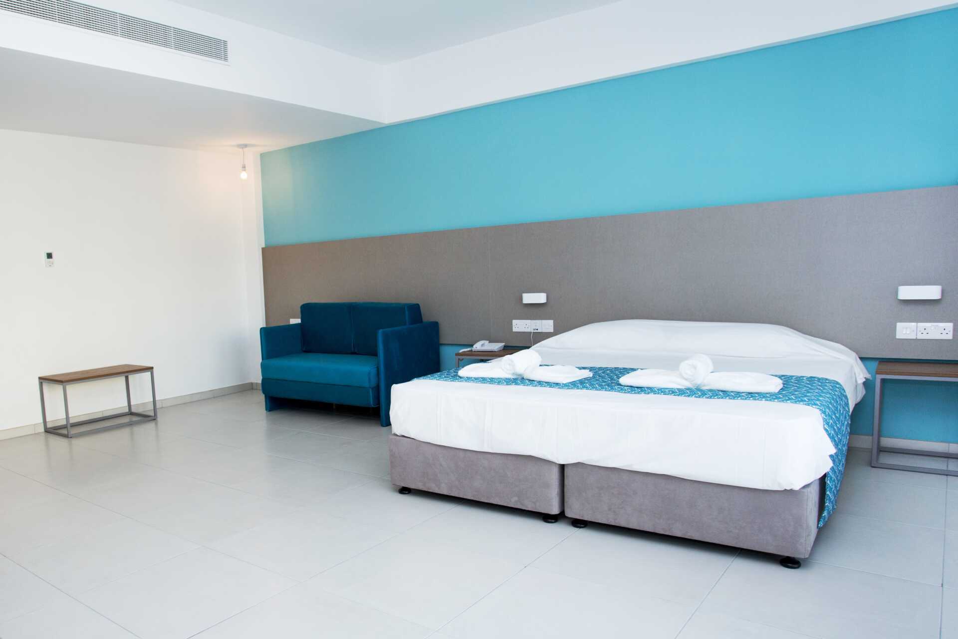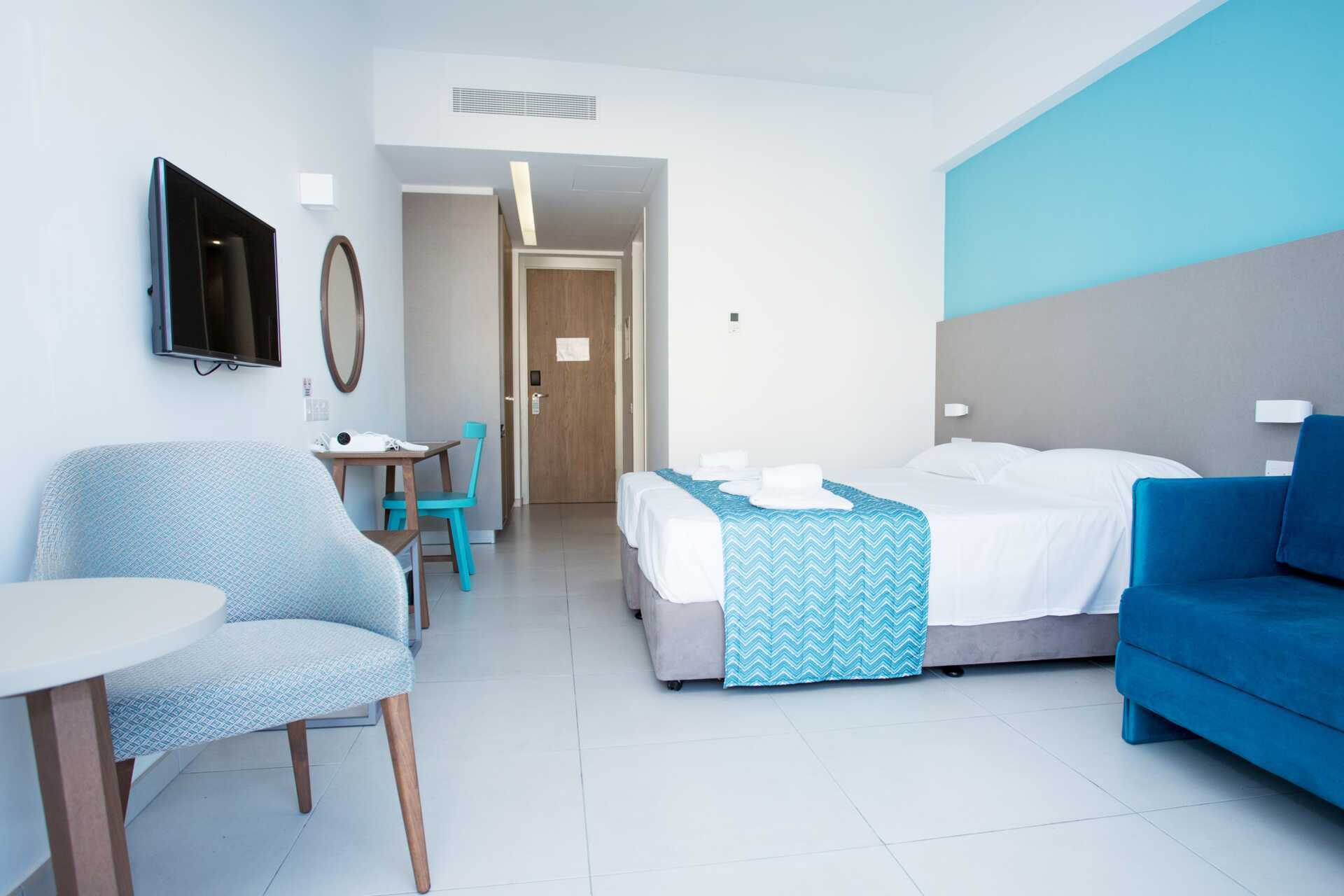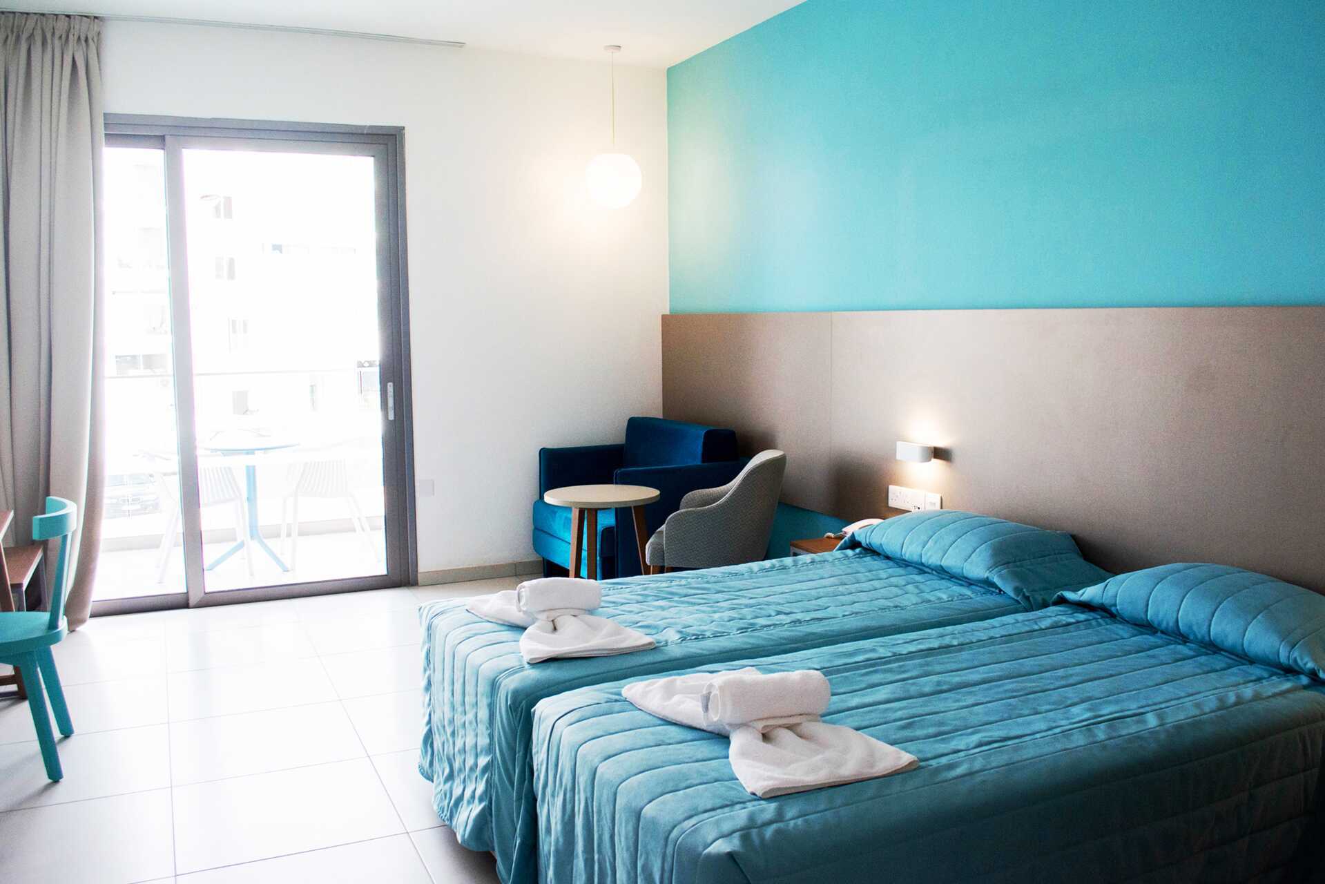 Familierom med balkong. En dobbeltseng eller to enkeltsenger. Mulig med ekstrasenger i sovesofa. Wifi og luftkondisjonering er inkludert. Safe mot avgift. Lite kjøleskap. Vannkoker samt kaffe og te. TV. Dusj og wc. Rengjøring 7 ggr/uke.