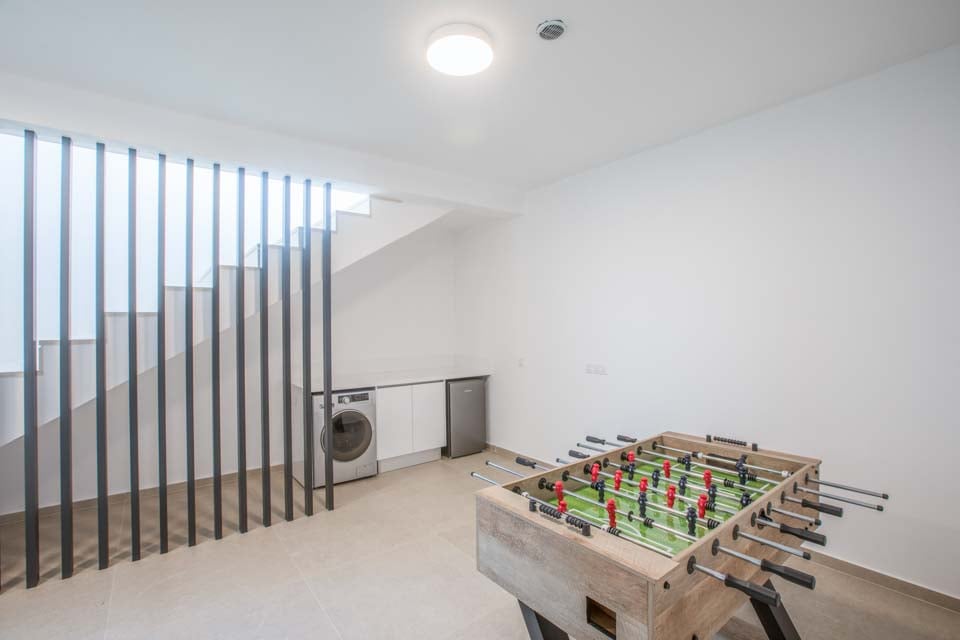 Denne villaen går over tre etasjer og kan skilte med en romslig stue, kjøkken og spiseplass med åpen planløsning – alt utstyrt med moderne møbler og den nyeste teknologien. Foldedører på terrassen forbedrer også dette moderne rommet ytterligere, og fører ut til et fantastisk uterom du vil våkne opp til hver dag.