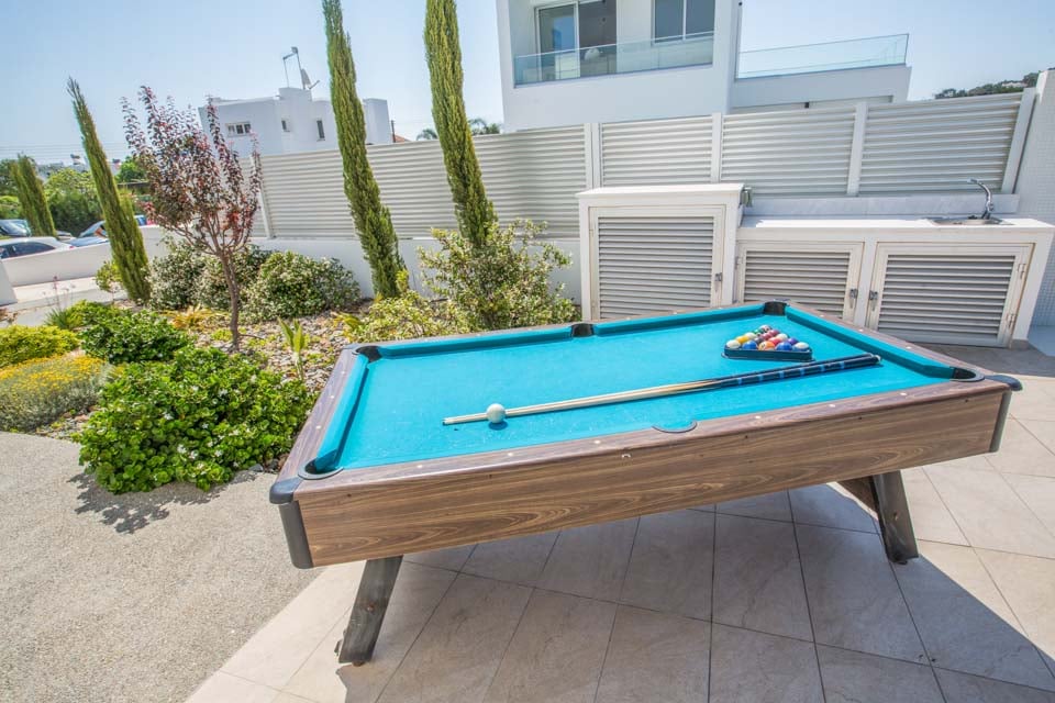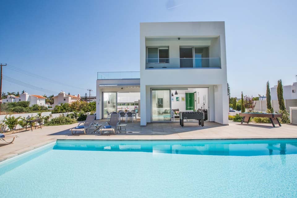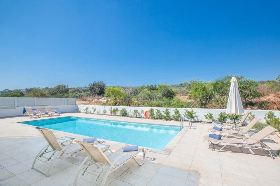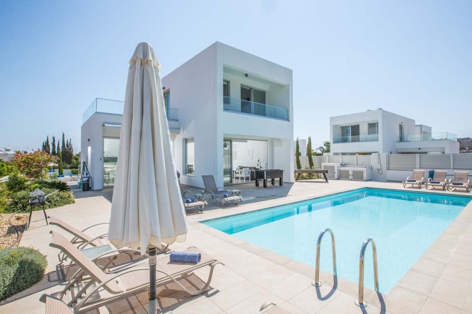 Din utendørsoase fortsetter når du går ned igjen og gjennom terrassedørene, hvor et skimrende svømmebasseng og elegante solsenger venter. Ta et pust og slapp av mens du soler deg i varmen fra middelhavssolen. Når kveldene trekker mot, setter et separat sitte- og grillområde scenen for fortryllende middager under stjernene. Enten du samler en vennegjeng, nyter øyeblikk med familien eller får mest mulig ut av en romantisk ferie – våre Greco-villaer legger grunnlaget for minner for livet.