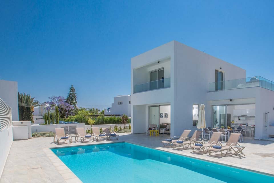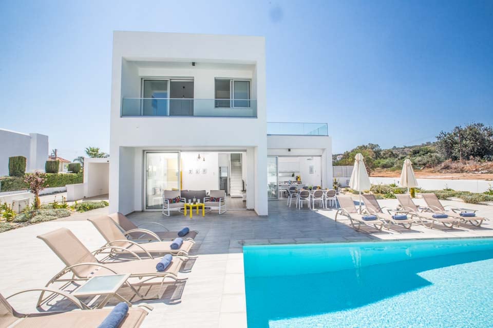 Utenfor venter den varme gløden fra den kypriotiske solen. Det romslige hageområdet er din egen private oase, sentrert rundt et glitrende overløpsbasseng. Nyt komfortable solsenger, nyt de varme strålene og samles rundt det innbydende uteserveringsområdet for utendørs måltider fra grillen mens de glitrende stjernene kommer til syne.