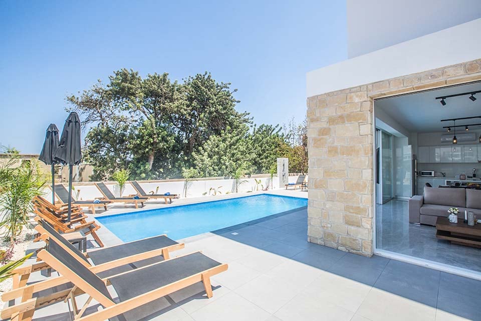 Vie Bleu 2 ligger i det populære feriestedet Protaras, bare 5 minutters gange fra strendene, butikkene, restaurantene og barene. Fantastiske villaer med en ideell beliggenhet, men likevel nær nok til å nyte en spasertur til stranden. Et godt valg for familier eller vennegrupper som ønsker en avslappende og avslappende ferie.