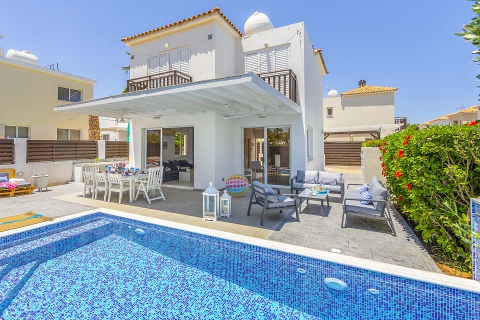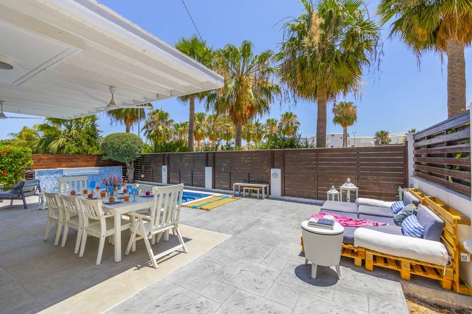 Denne villaen ligger i Pernera, en kort spasertur fra stranden, og er ideell for de som ønsker å nyte solskinnet og utforske lokalområdet uten å måtte bruke bil. En kort spasertur unna finner du en rekke spisesteder, butikker, minimarkeder og strender. Nyt endeløse dager med avslapning ved bassengkanten, eller få mest mulig ut av lyden av bølgene som slår mot sanden.