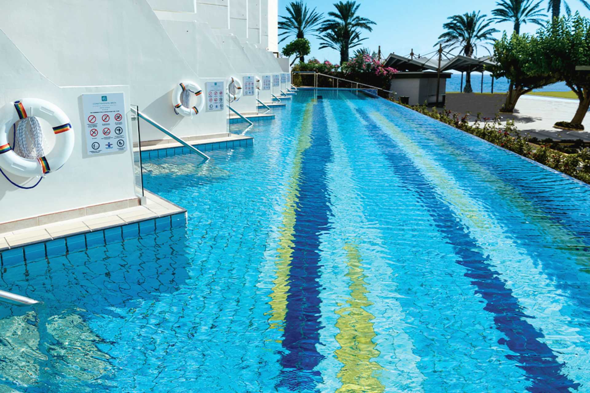 Juniorsuite med privat basseng, markterrasse med solsenger og havutsikt. En dobbeltseng eller to enkeltsenger. Mulig med ekstraseng i sovesofa. Wifi, luftkondisjonering og safe er inkludert. Kjøleskap. Vannkoker samt kaffe og te. Espressomaskin – kapsler er ikke inkludert, men kan kjøpes på hotellet. TV. Strykejern og strykebrett. Hårføner. Badekåper og tøfler. Badekar, dusj og wc. Rengjøring 7 ggr/uke.