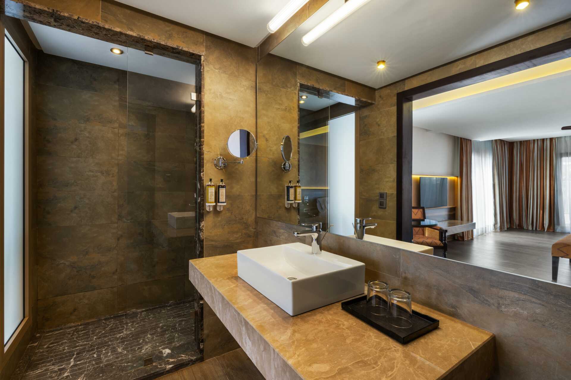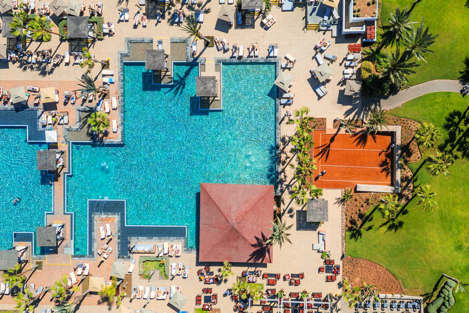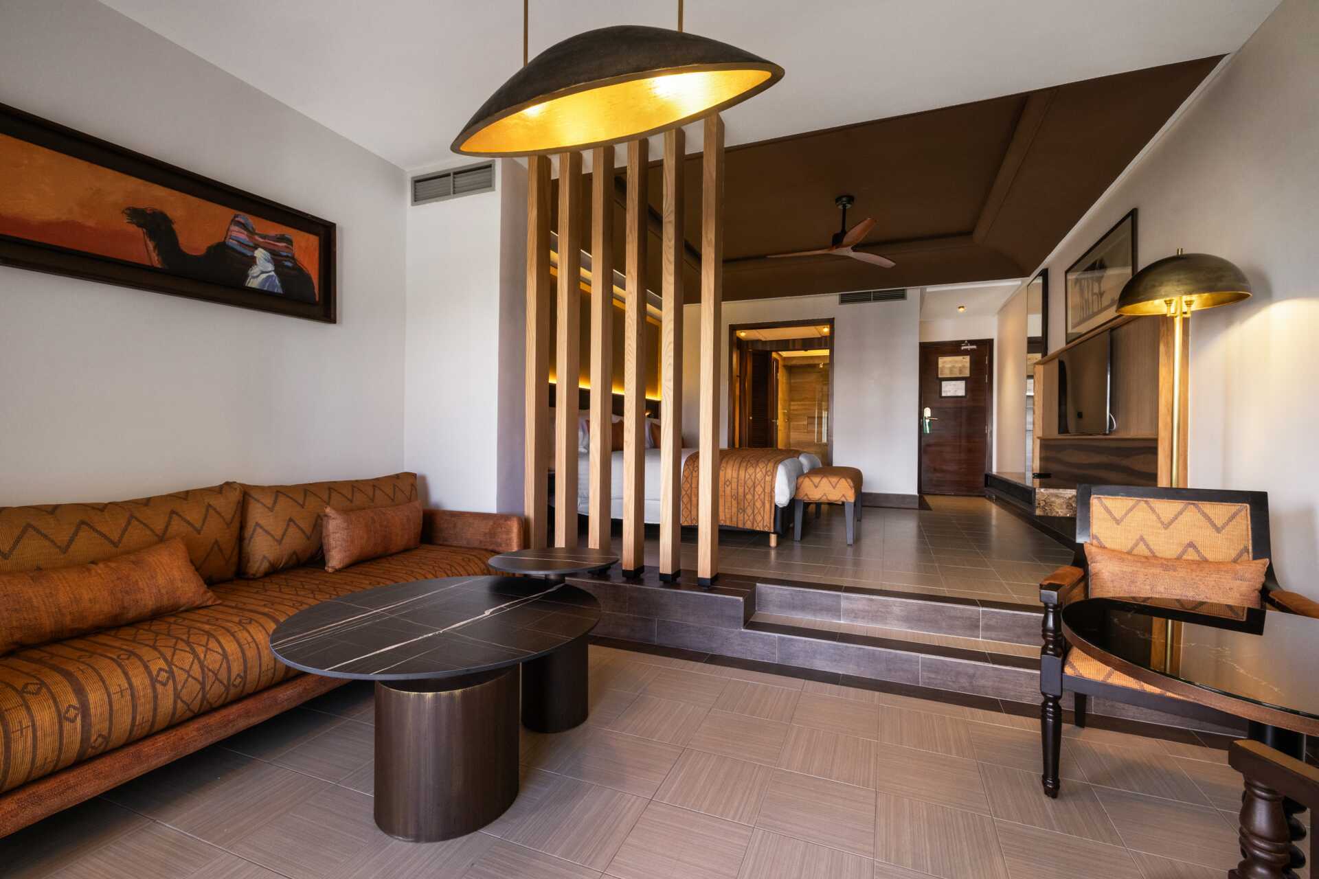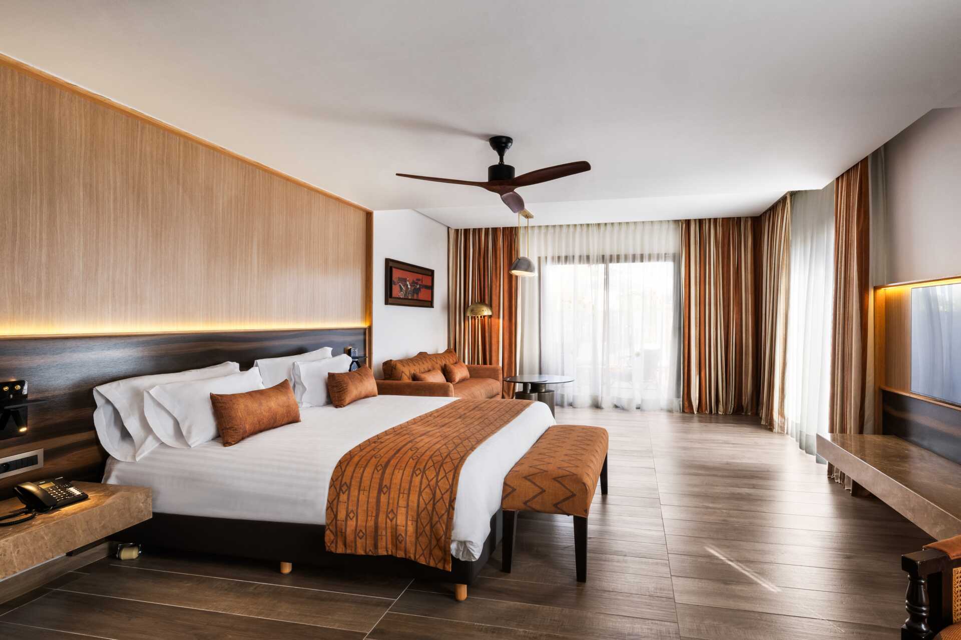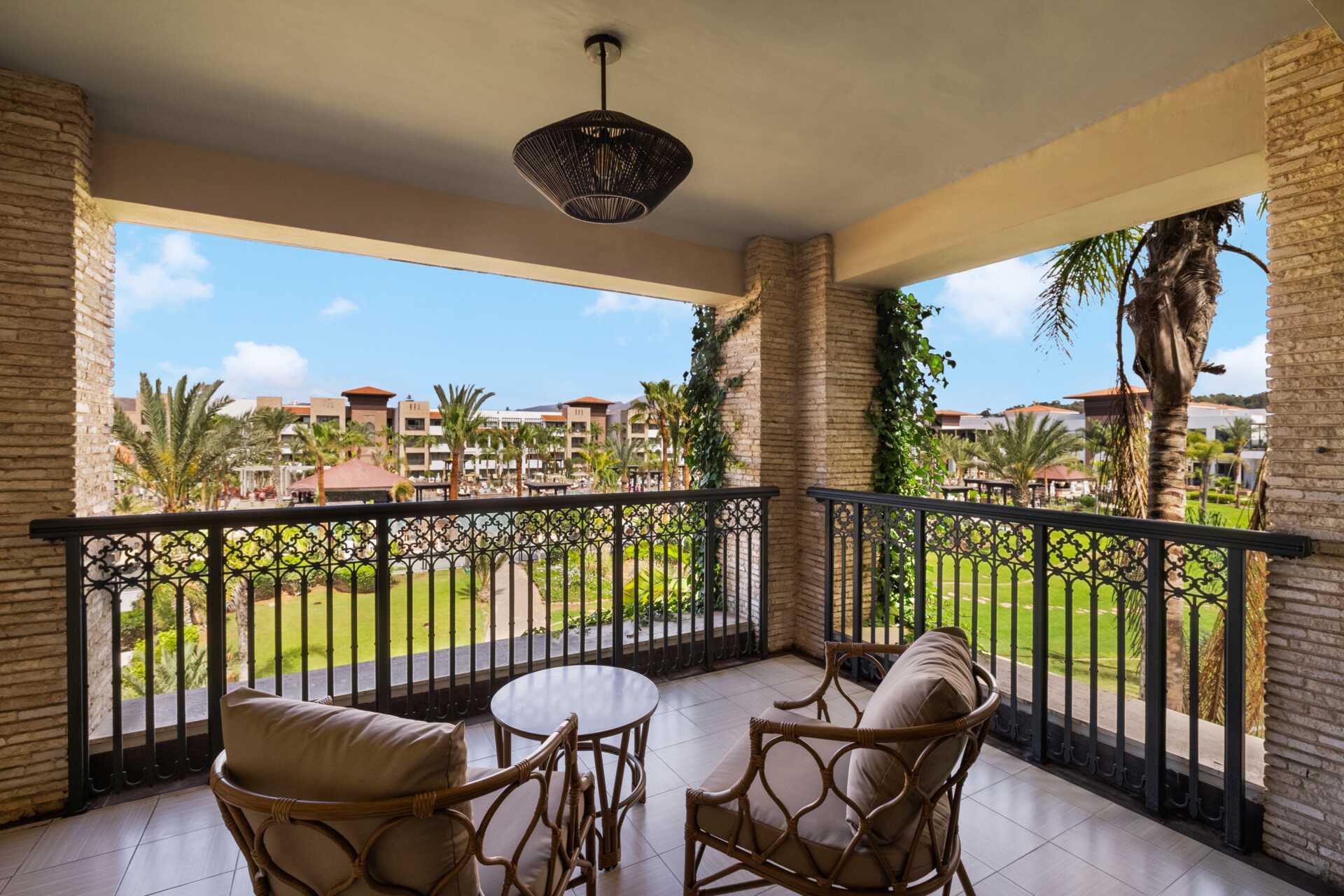 Dobbeltrom med balkong eller terrasse, noen med bassengutsikt. En dobbeltseng eller to bredere enkeltsenger. Mulig med ekstraseng i sovesofa eller feltseng. Stue med sofa. Wifi, luftkondisjonering og safe inkludert. Minibar. Takvifte. TV. Hårføner. Baderom med dusj og wc. Rengjøring 7 ggr/uke. Liten nivåforskjell/et par trappetrinn i rommene.