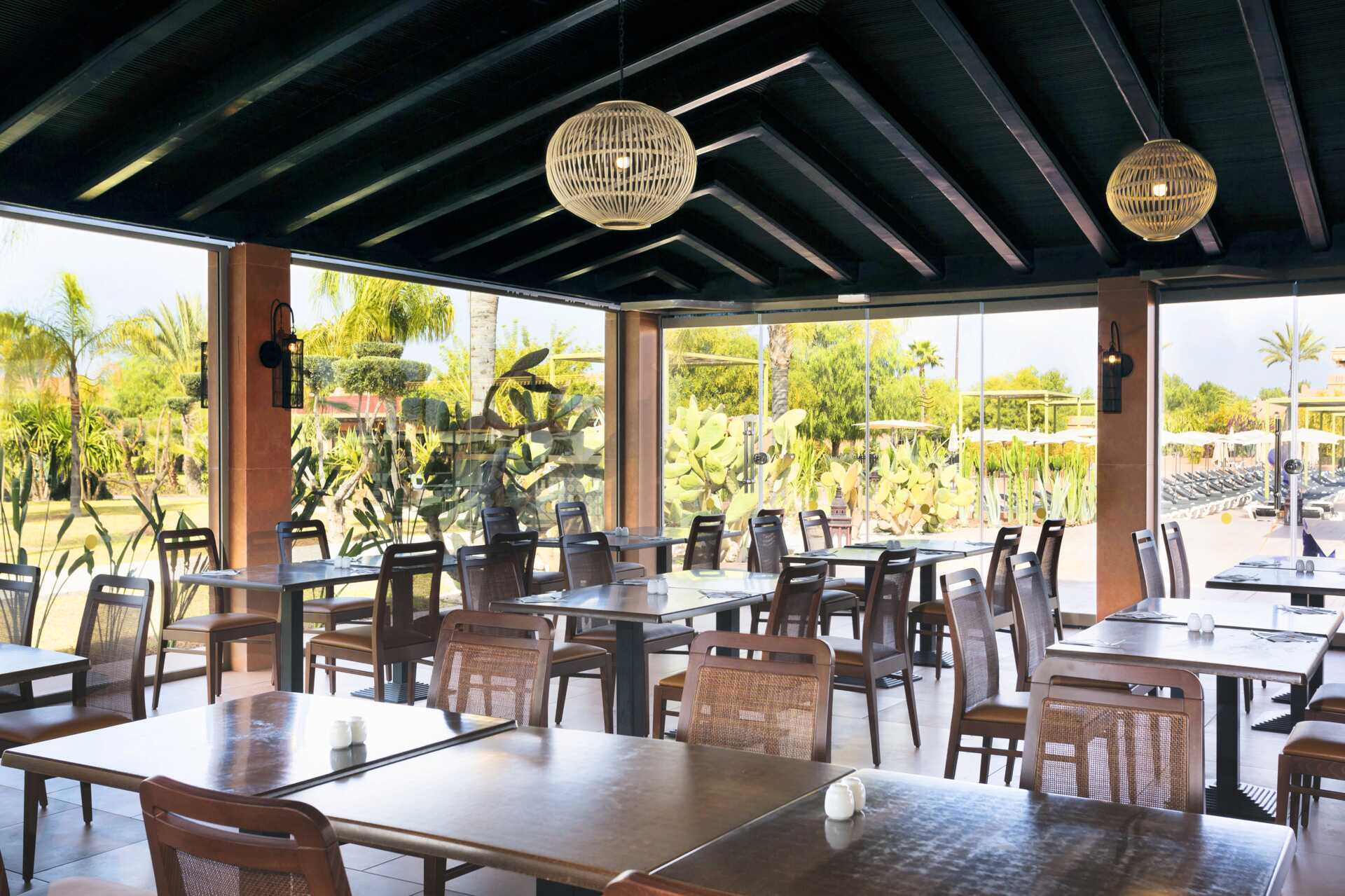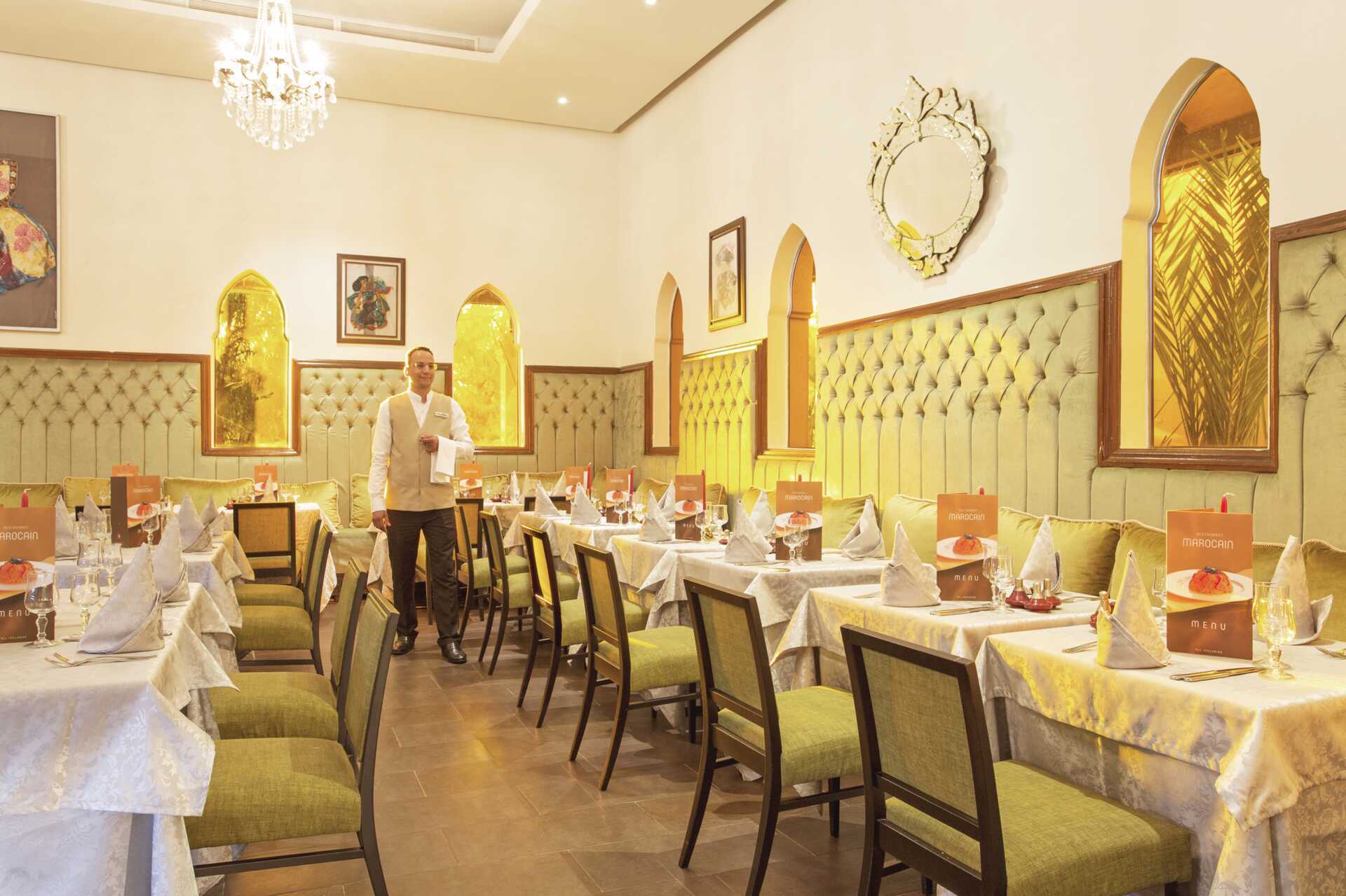Riu Tikida Palmeraie har tre restauranter. I bufférestauranten Le Tikida serveres frokost og middag, hvor det også er vegetariske alternativer, og to ganger i uken er det temabufféer. I à la carte-restauranten El Nakheel kan du prøve det velsmakende marokkanske kjøkkenet med to møter per kveld. La Trattoria ved bassenget som serverer frokost om du foretrekker mer tid i sengen om morgenen, lunsj, snacks på ettermiddagen og på kvelden serverer den gode retter fra det italienske kjøkkenet. Bordreservasjon er nødvendig i à la carte-restaurantene. Pent antrekk. Tre barer, inkludert en lobbybar, en loungebar og en poolbar som er åpen avhengig av været.