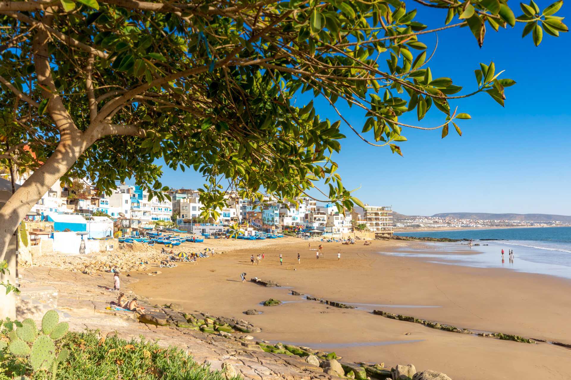 Til tross for at det bare er en liten fiskerlandsby med en lang, nydelig sandstrand, har Taghazout beholdt sin genuine sjarm. Her kan du starte dagen med yoga og surfe om ettermiddagen, eller bare ta det med ro hele dagen.