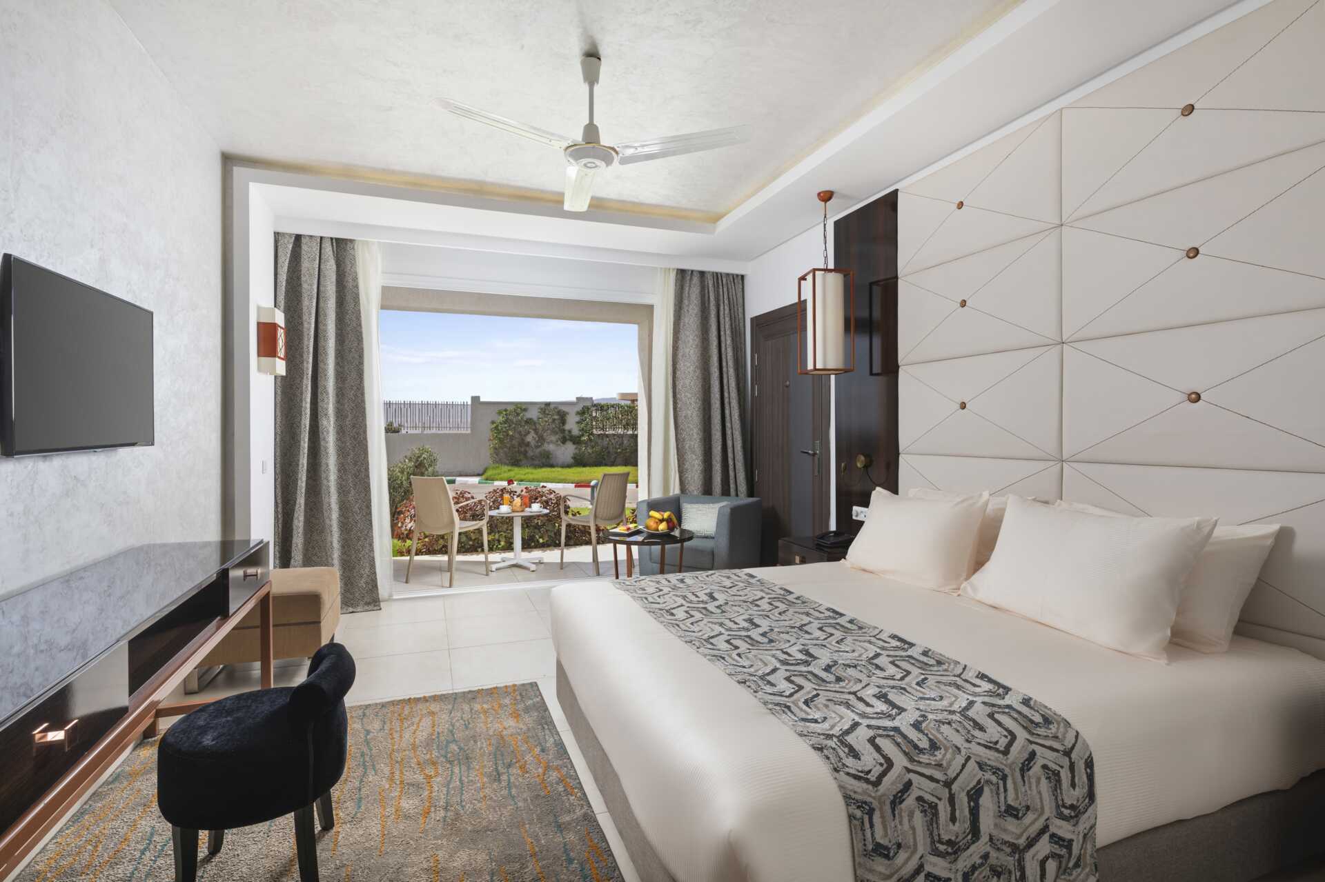 Deluxerom med balkong, noen med havutsikt, begrenset havutsikt eller bassengutsikt. En dobbeltseng eller to enkeltsenger. Wifi, luftkondisjonering og safe inkludert. Minibar inkludert, etterfylles hver dag med brus. Vannkoker samt kaffe og te. Nespresso kaffemaskin, kapsler inkludert. TV. Hårføner. Dusj og wc. Rengjøring 7 ggr/uke.