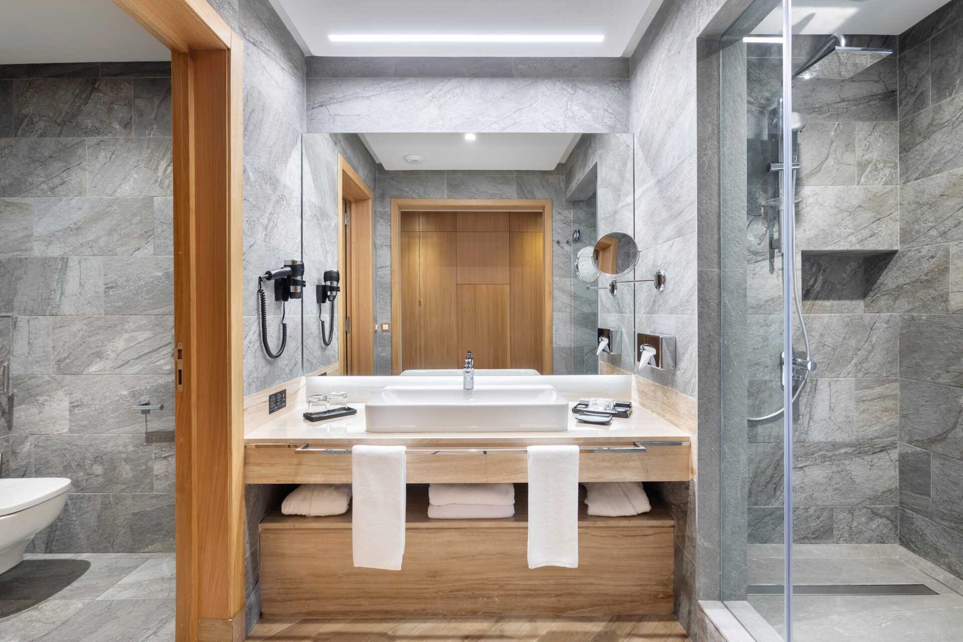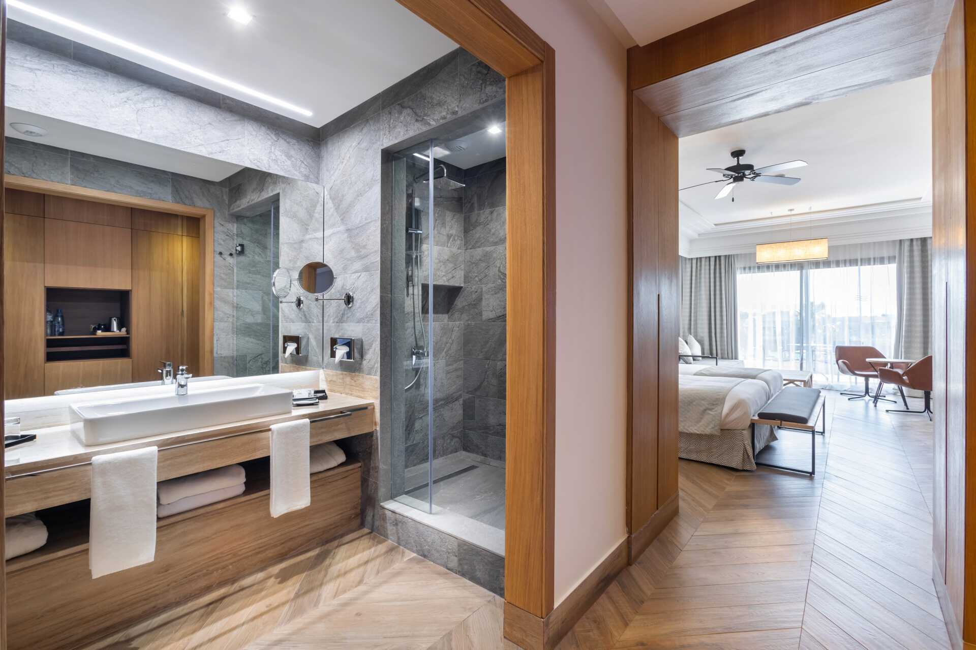 Dobbeltrom med balkong eller terrasse, noen med havutsikt og noen med begrenset havutsikt. To enkeltsenger. Mulig med ekstrasenger i sovesofa. Wifi, luftkondisjonering og safe inkludert. Takvifte. Minibar. Vannkoker samt kaffe og te. TV. Badekåper. Hårføner. Badekar og wc. Rengjøring 7 ggr/uke. Barn under 2 år regnes inn i maksantallet i rommet.