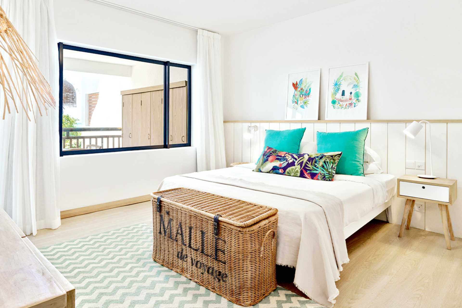 Familiesuite med terrasse eller balkong. Familiesuiten består av to soverom og en balkong eller terrasse med minikjøkken. En dobbeltseng. Mulig med en ekstrasenger i en køyeseng. Minikjøkken med kjøleskap, mikrobølgeovn og kokeplater, enkelt kjøkkenutstyr samt spisebord og sofa. Wifi, luftkondisjonering og safe inkludert. Takvifte. Vannkoker samt kaffe og te. Hårføner. Dusj og separat wc. Rengjøring 7 ggr/uke. Barn under 2 år regnes inn i maksantallet i rommet.