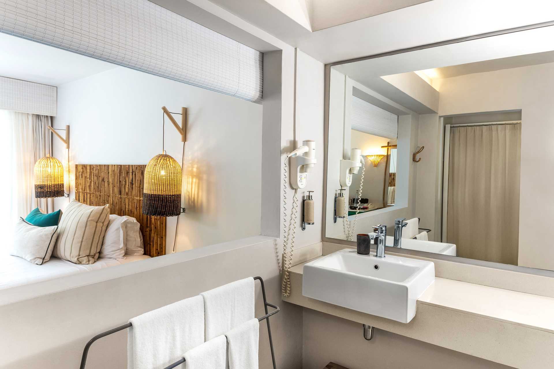 Dobbeltrom med balkong eller terrasse, noen med havutsikt eller bassengutsikt. En dobbeltseng eller to enkeltsenger. Du kan velge din favorittpute fra hotellets putemeny. Wifi, luftkondisjonering og safe inkludert. Minibar. Vannkoker samt kaffe og te. TV. Hårføner. Baderom med dusj og wc. Rengjøring 7 ggr/uke.