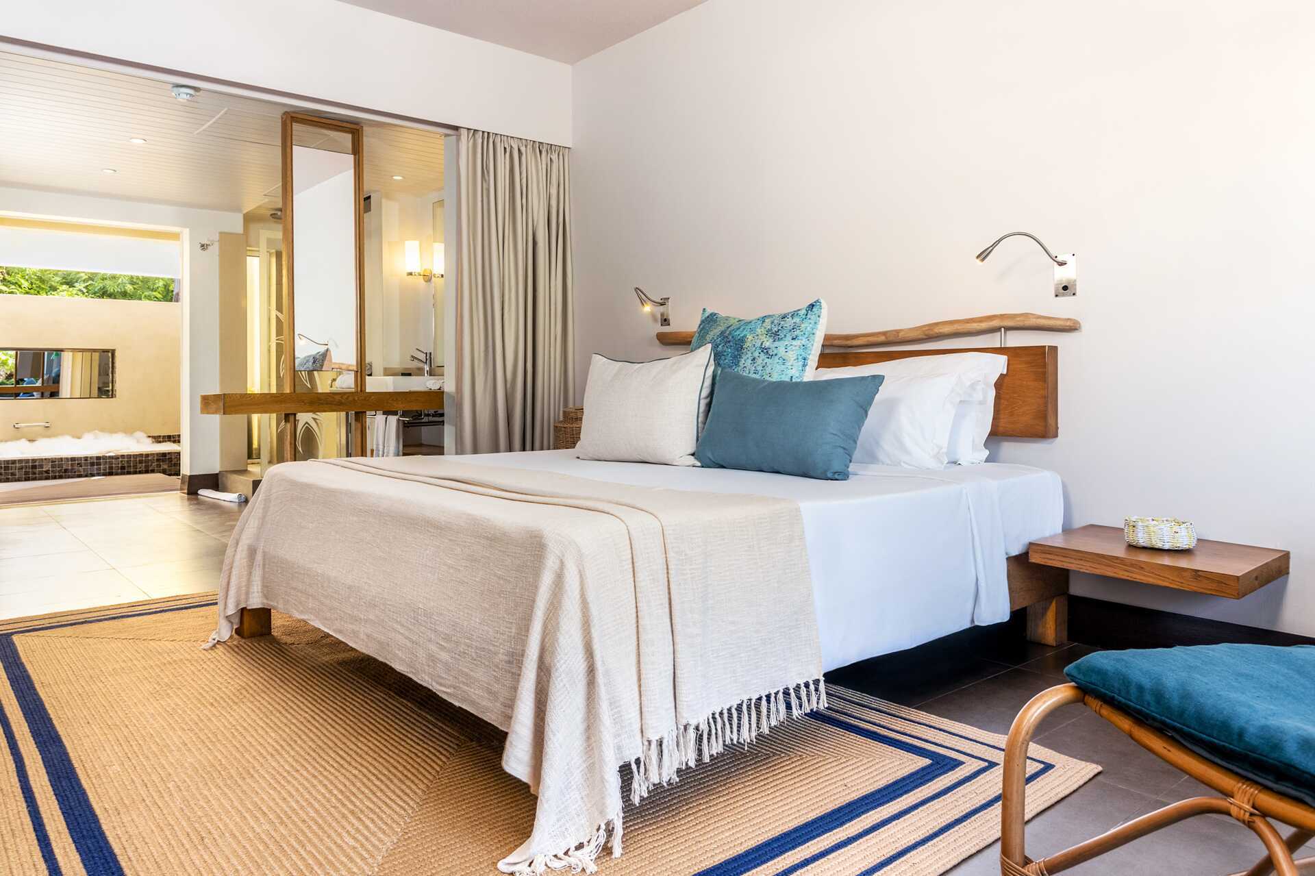 Deluxesuite med balkong og begrenset havutsikt og jacuzzi. En dobbeltseng. Velg din favorittpute fra hotellets putemeny. Wifi, luftkondisjonering og safe inkludert. Minibar. Vannkoker samt kaffe og te. TV. Hårføner. Baderom med dusj og wc. Rengjøring 7 ggr/uke.