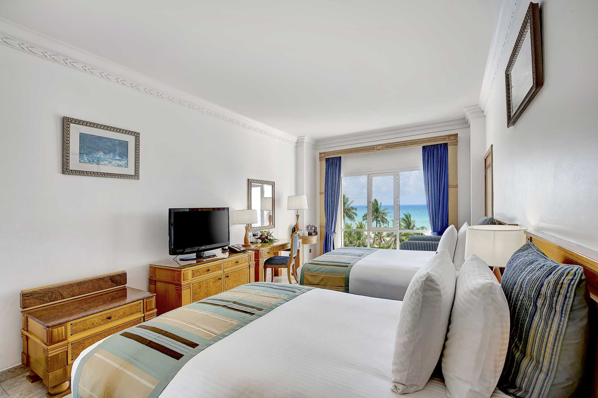 Dobbeltrom med havutsikt, men uten uteplass. En dobbeltseng eller to enkeltsenger. Mulig med en ekstraseng i sovesofa. Wifi, safe og luftkondisjonering inkludert. Minibar og vannkoker samt kaffe og te. TV. Badekåper. Hårføner. Badekar eller dusj samt wc. Rengjøring 7 ggr/uke. Barn under 2 år regnes inn i maksantallet i rommet.