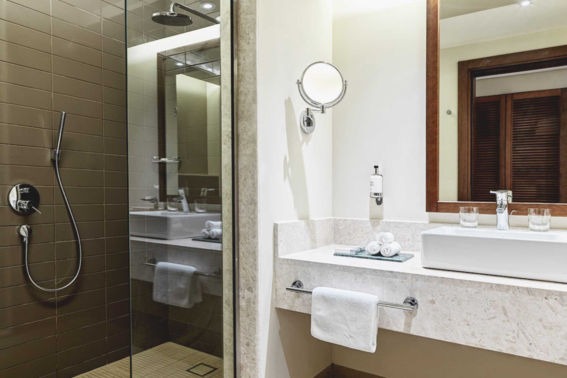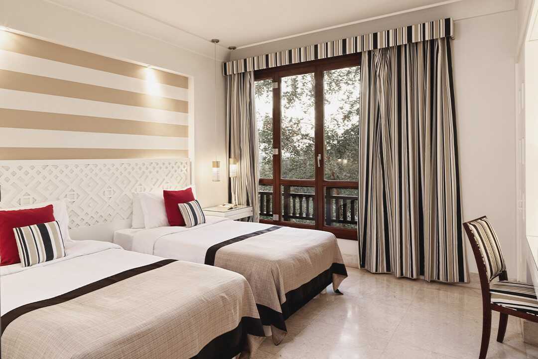 Deluxerom med balkong eller terrasse, noen med utsikt over lagunen og noen med havutsikt. En dobbeltseng eller to enkeltsenger. Mulig med ekstraseng for en tredje person. Wifi, luftkondisjonering og safe inkludert. Minibar, to flasker vann per dag inkludert. Vannkoker samt kaffe og te. TV. Hårføner. Badekåper og tøfler. Badekar eller dusj samt wc. Rengjøring 7 ggr/uke. Barn under 2 år regnes inn i maksantallet i rommet.