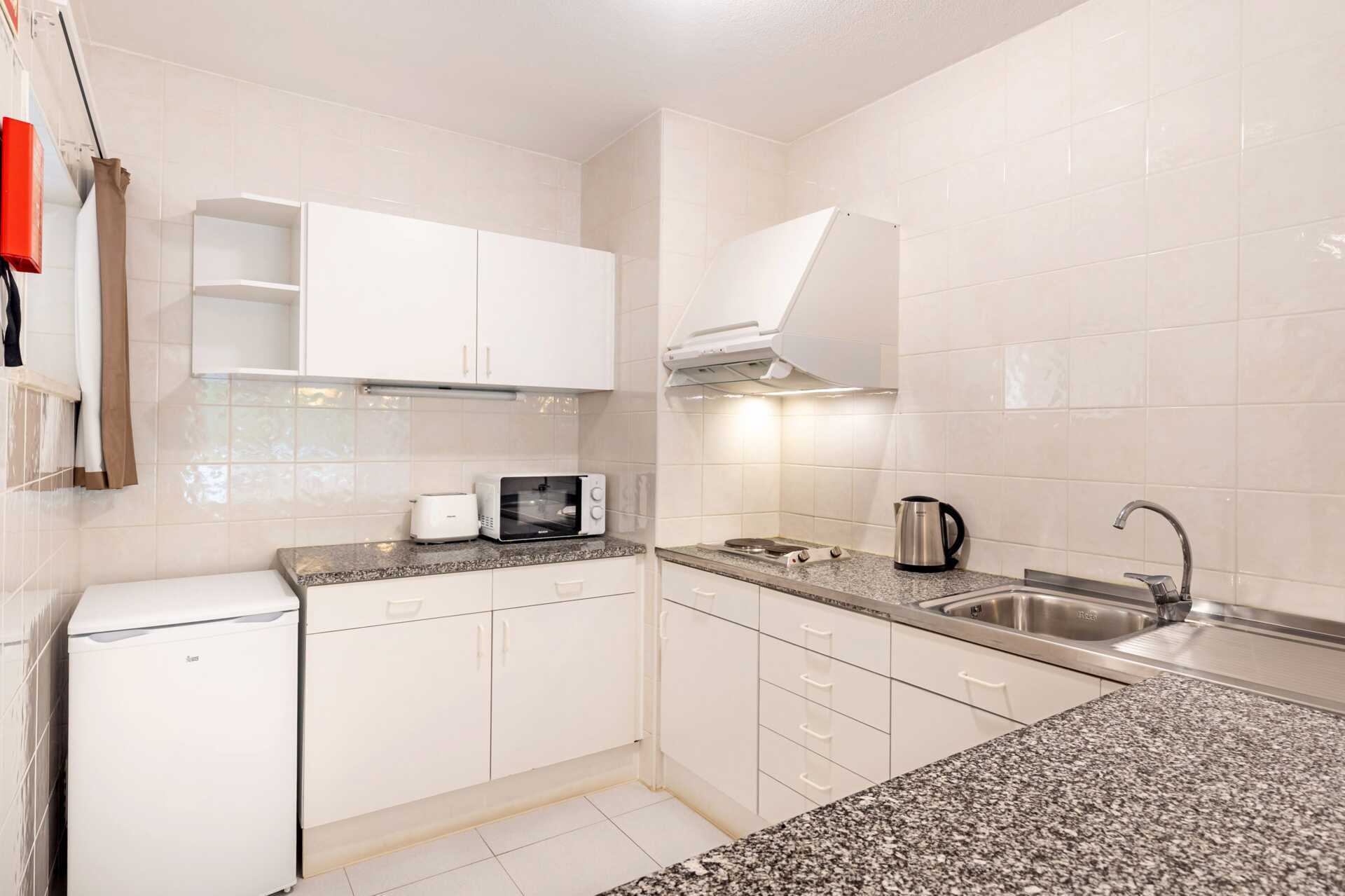 Toromsleilighet med balkong. Et soverom og stue med minikjøkken. To enkeltsenger. Mulig med ekstrasenger i to sovesofaer. Minikjøkken med kokeplater, kjøleskap, vannkoker, brødrister, mikrobølgeovn og enkel kjøkkenutstyr. Wifi, luftkondisjonering og safe inkludert. TV. Hårføner. Dusj og wc. Rengjøring 7 ggr/uke.