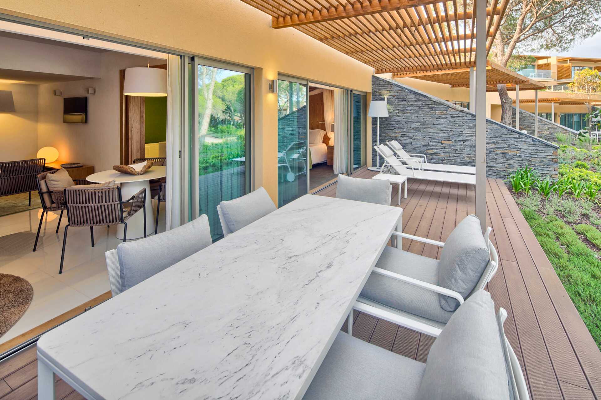 Toroms suite med balkong eller terrasse. Et soverom og en stue. Rommene deles med en skyvedør. To enkeltsenger eller en dobbeltseng. Mulig med ekstrasenger i sovesofa. Wifi, luftkondisjonering og safe inkludert. Minibar. Nespresso kaffemaskin med kapsler. TV. Badekåper og tøfler. Hårføner. Bad med badekar, separat dusj og wc. Rengjøring 7 ggr/uke. Barn under 2 år regnes inn i maksantallet i rommet.