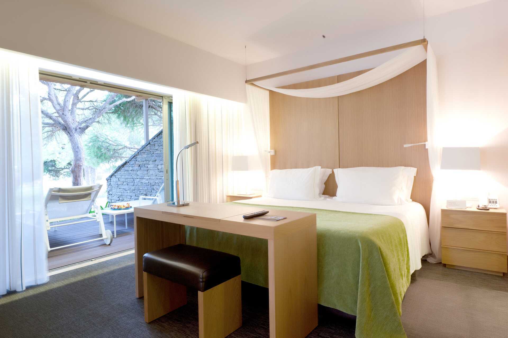 Deluxerom med balkong eller terrasse, noen vender mot havet og noen mot bassenget, men grøntområder hindrer utsikten. Wifi, luftkondisjonering og safe inkludert. To enkeltsenger eller en dobbeltseng. Minibar. Nespresso kaffemaskin med kapsler. TV. Hårføner. Badekåper og tøfler. Bad med badekar, separat dusj og wc. Rengjøring 7 ggr/uke. Barn under 2 år regnes inn i maksantallet i rommet.