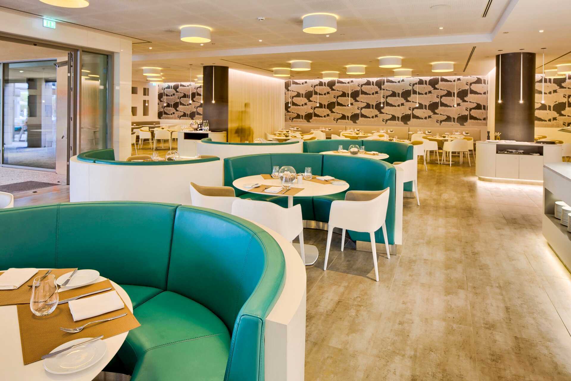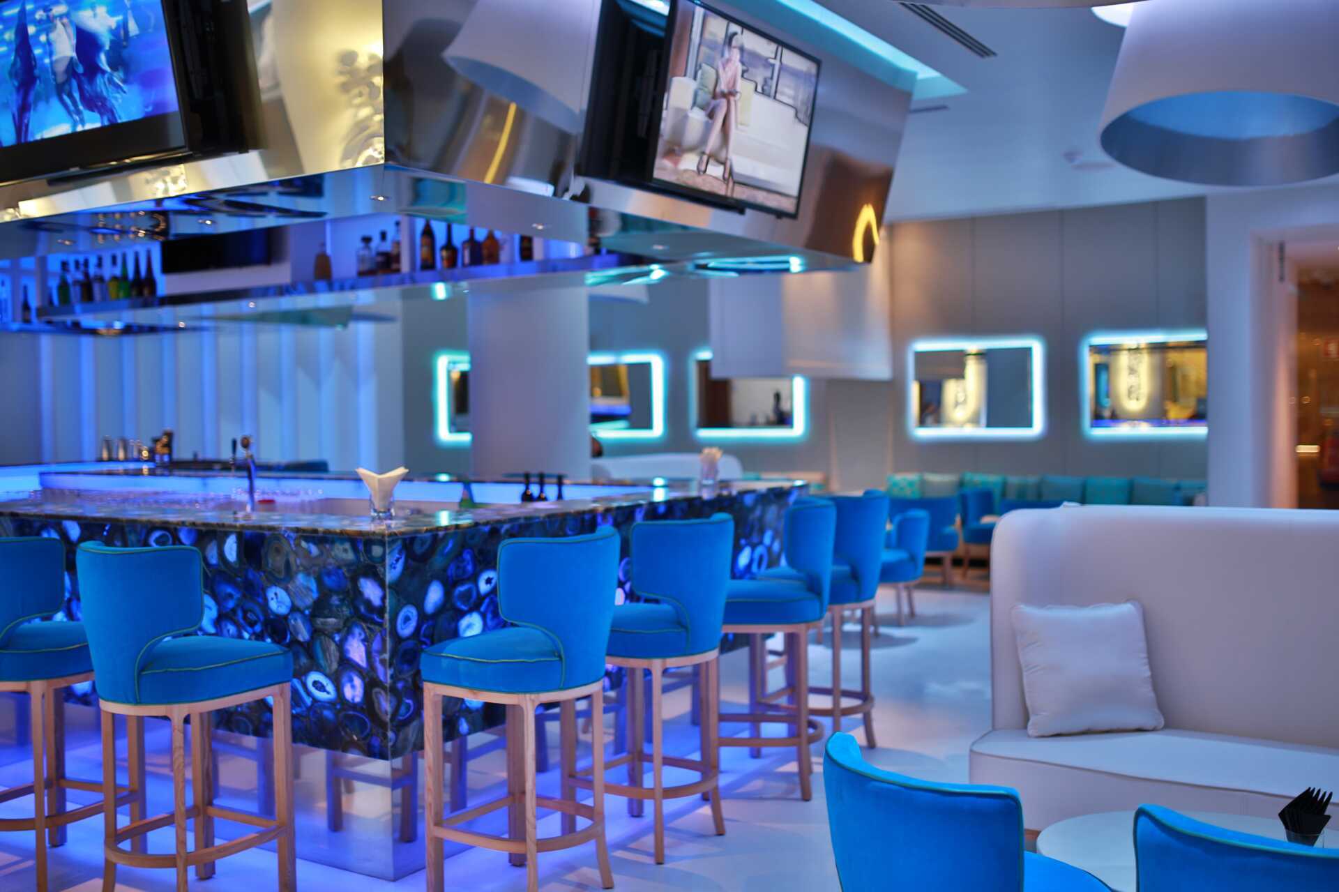 Bufférestauranten Abyad tilbyr en deilig buffé til frokost og middag. Open Deck serverer lette retter som salater, smørbrød, hamburgere og grillretter. Bluum Bar er åpen om kveldene og tilbyr drinker og lette måltider. Al Quimia er en elegant à la carte-restaurant inspirert av lokal mat og med en omfattende vinkjeller. Uddo er en japansk à la carte-restaurant. À la carte-restauranten Lima tilbyr det beste av italiensk mat. À la carte-restaurantene krever bordreservasjon og formell antrekk, langbukser for menn.