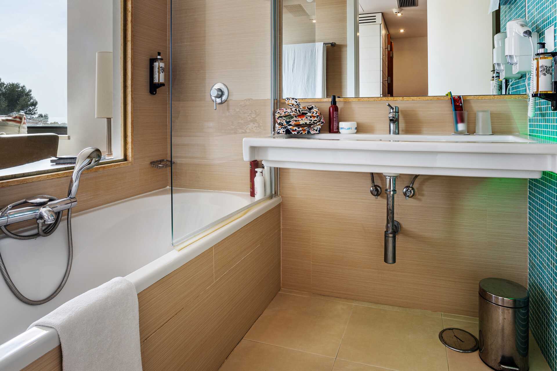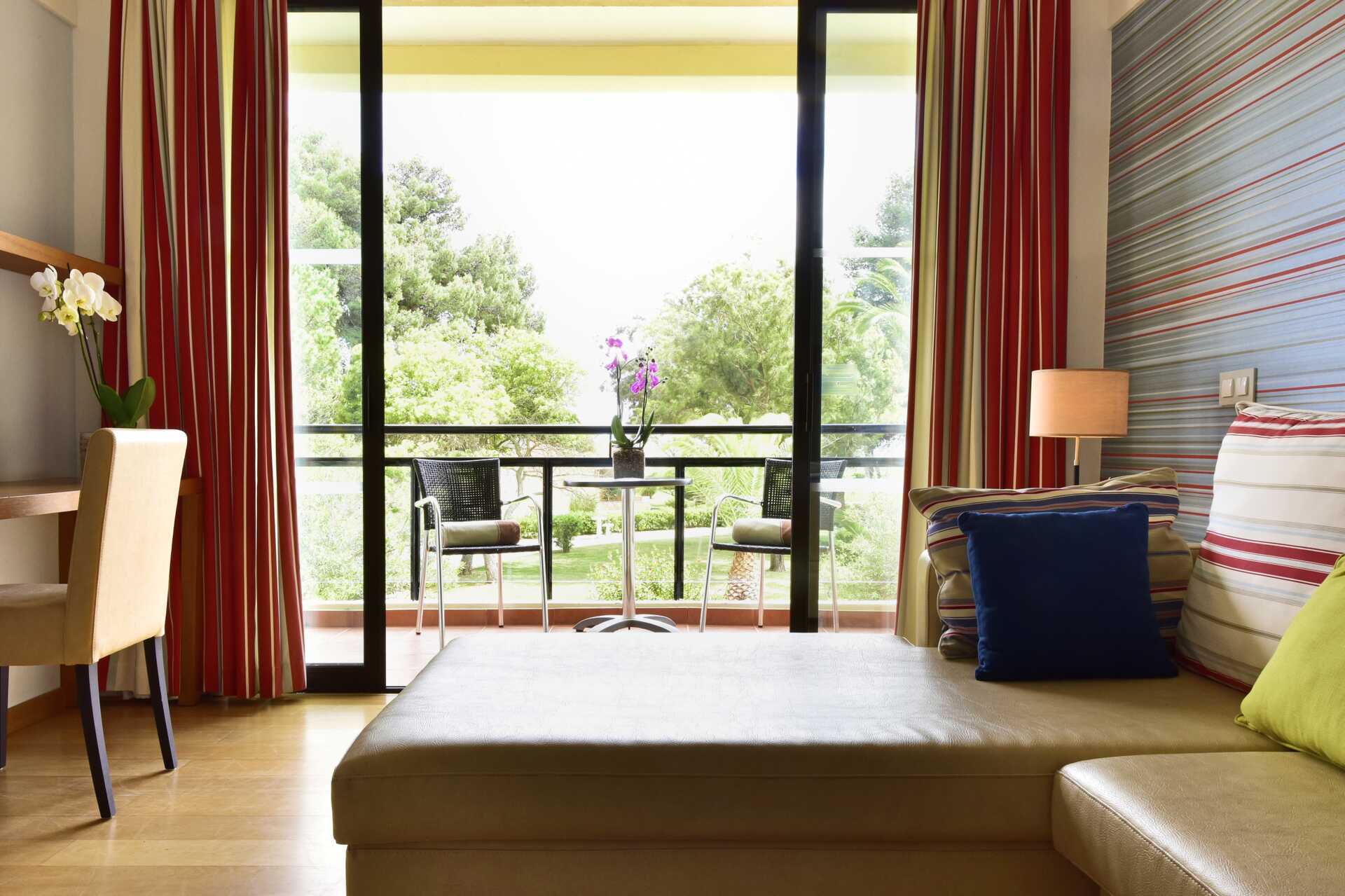Suite med balkong. Rommene består av et soverom og et oppholdsrom. En dobbeltseng eller to enkeltsenger og en sovesofa eller en konvertibel lenestol. Wifi, luftkondisjonering og safe inkludert. Minibar. TV med internasjonale kanaler. Hårføner. Badekar eller dusj samt wc. Rengjøring 5 ggr/uke.