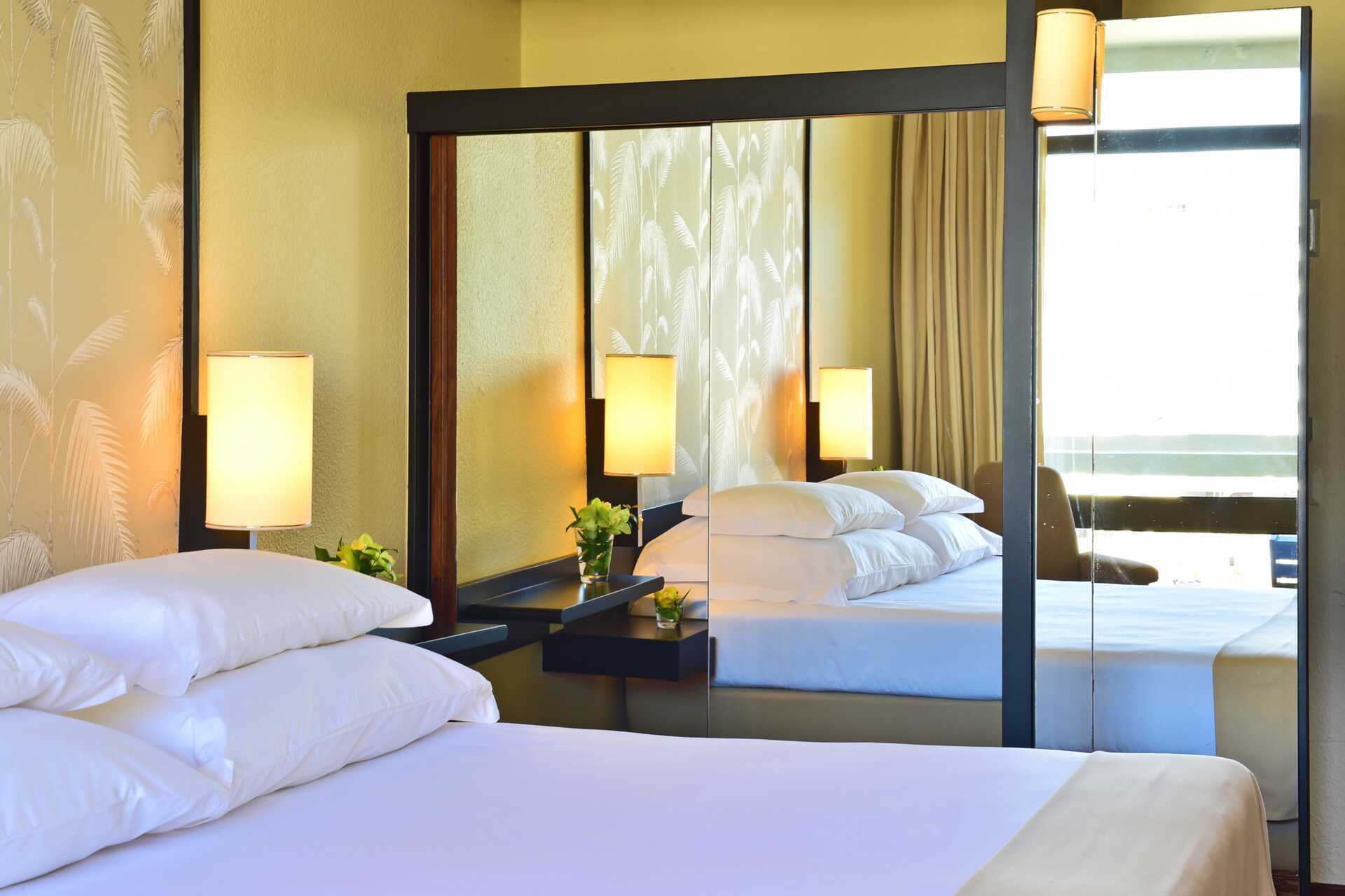 Dobbeltrom med balkong, noen med begrenset havutsikt og noen med utsikt mot hagen. En dobbeltseng eller to enkeltsenger. Mulig med ekstraseng i oppredbar lenestol eller feltseng. Barn til og med 3 år sover i barneseng. Wifi, luftkondisjonering og safe inkludert. Vegg-til-vegg-teppe Minibar. TV. Hårføner. Badekar eller dusj samt wc. Rengjøring 7 ggr/uke.