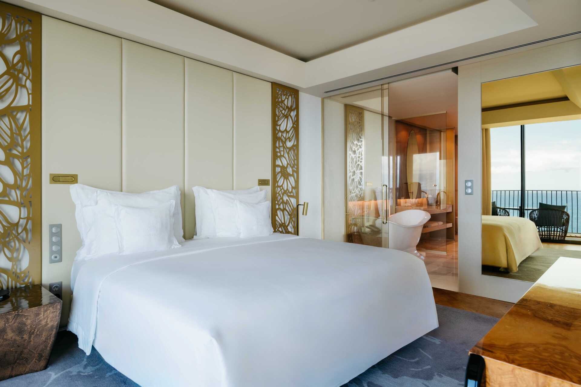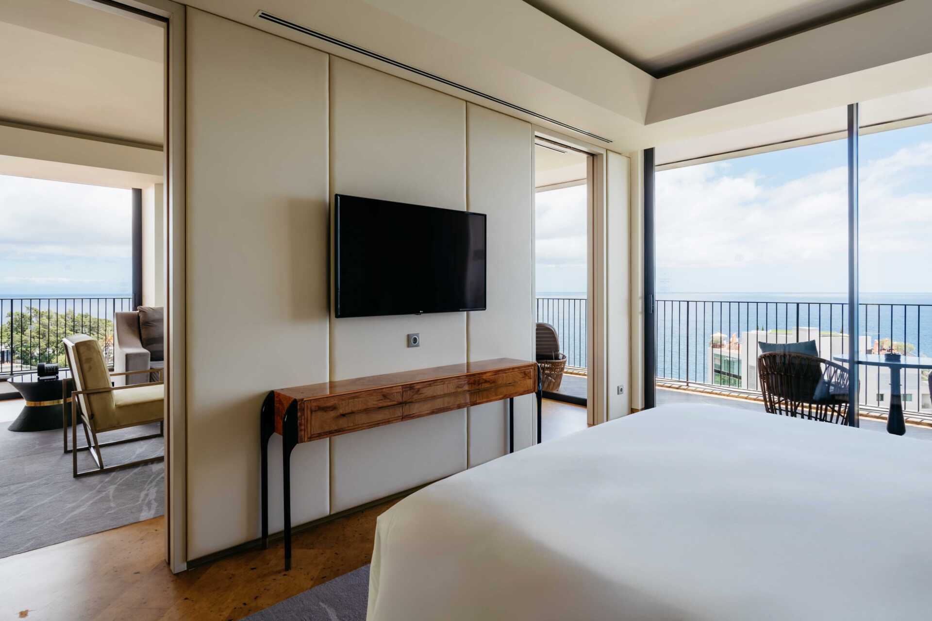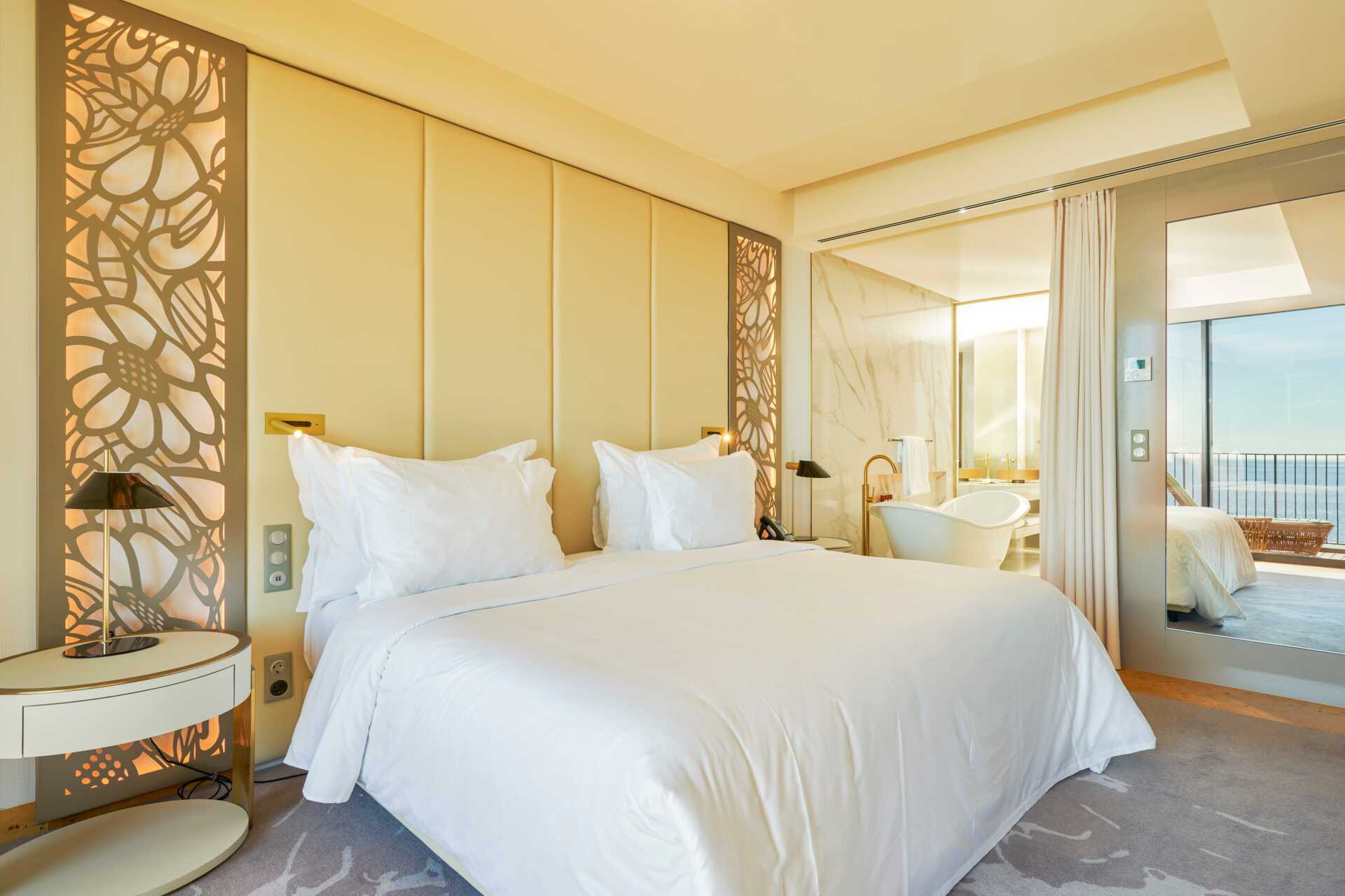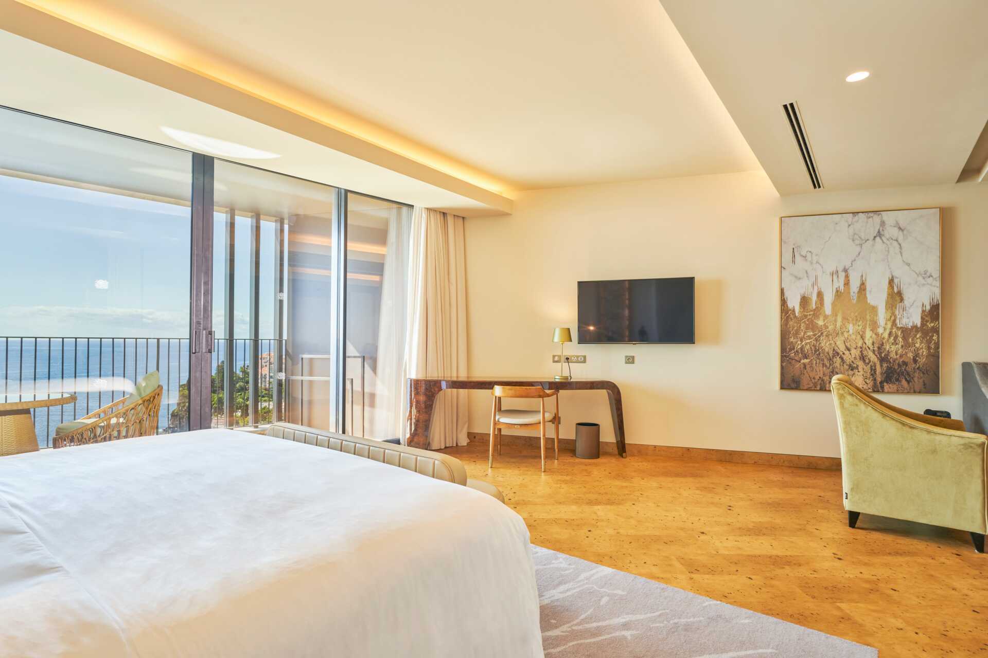 Suite med balkong og havutsikt. Suiten består av et soverom og en stue med skyvedører, sofa og spiseplass. En dobbeltseng eller to enkeltsenger. Mulig med en ekstraseng i sovesofa. Putemeny. Wifi, luftkondisjonering og safe inkludert. Minibar. Vannkoker samt kaffe og te. Nespresso kaffemaskin, kapsler inkludert og etterfylles hver dag. TV. Strykejern og strykebrett. Badekåper og tøfler Hårføner. Badet består av en del med badekar og dusj, en del med to servanter og en del med separat dusj og separat wc. Rengjøring 7 ggr/uke.