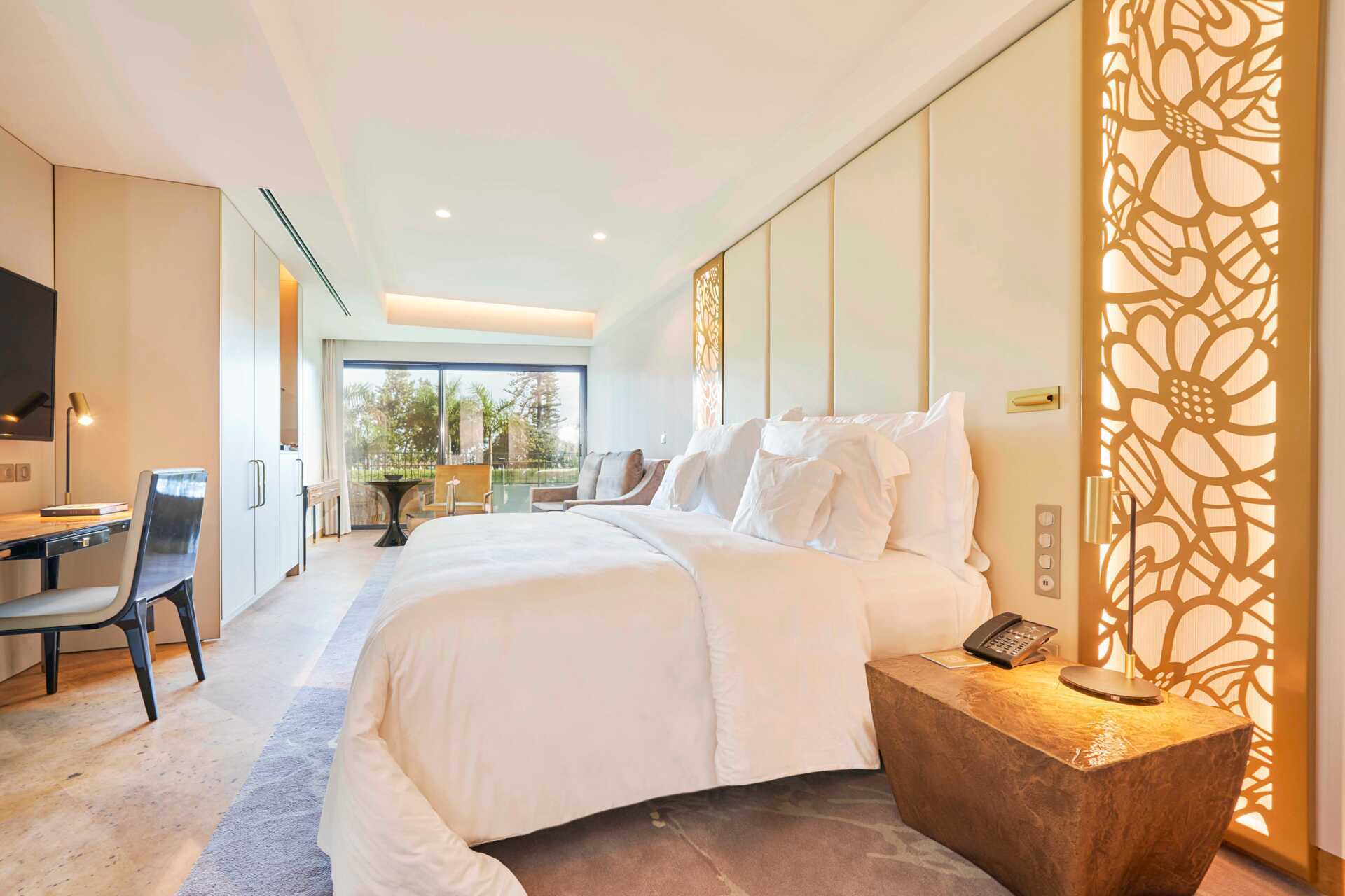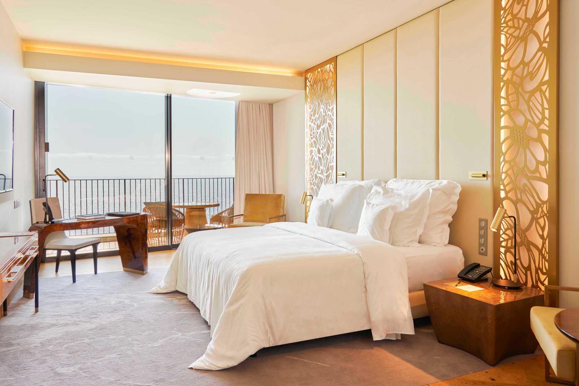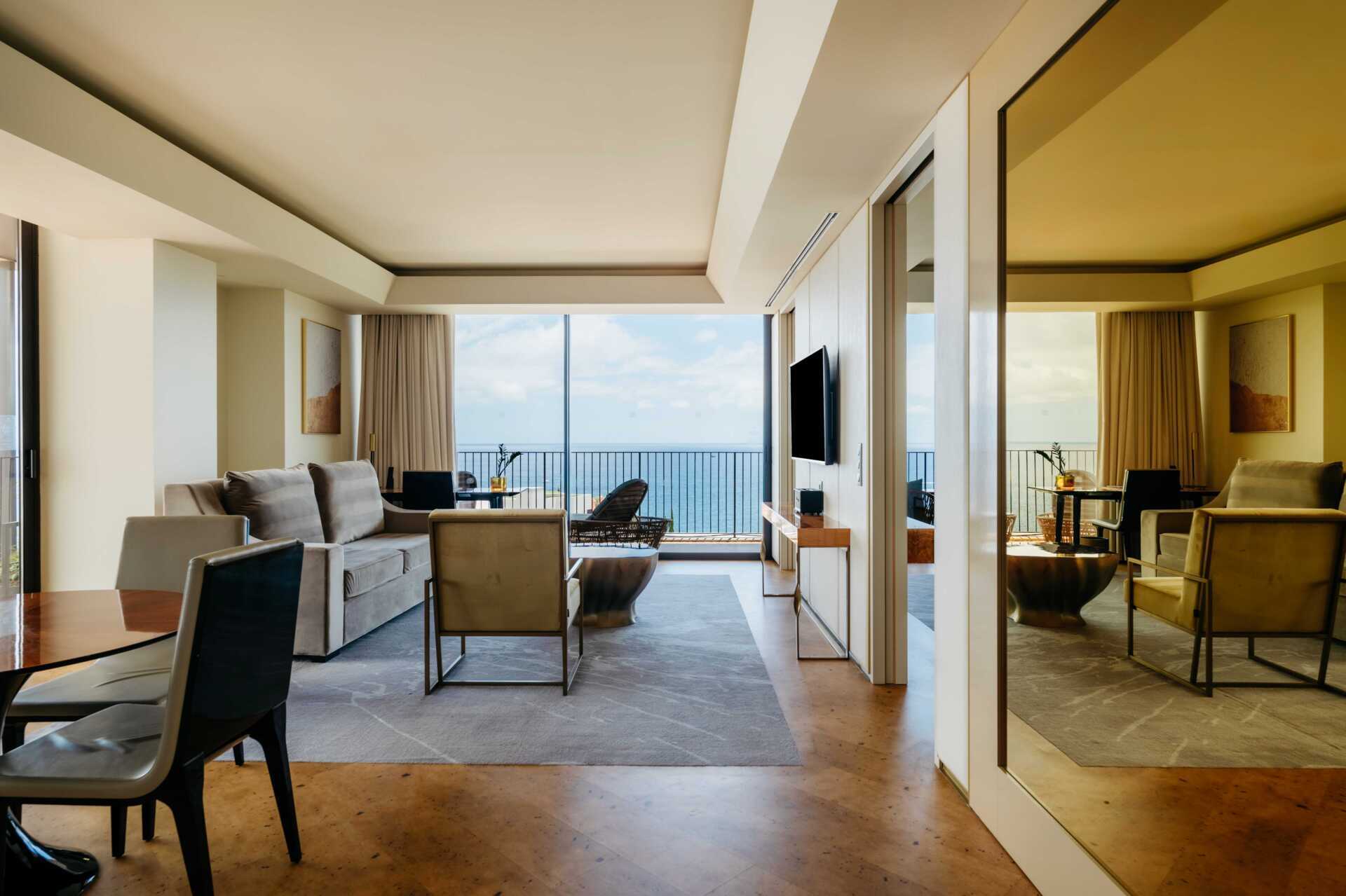 Suite med balkong og havutsikt. Suiten består av et soverom og en stue med skyvedører, sofa og spiseplass. En dobbeltseng eller to enkeltsenger. Mulig med en ekstraseng i sovesofa. Putemeny. Wifi, luftkondisjonering og safe inkludert. Minibar. Vannkoker samt kaffe og te. Nespresso kaffemaskin, kapsler inkludert og etterfylles hver dag. TV. Strykejern og strykebrett. Badekåper og tøfler Hårføner. Badet består av en del med badekar og dusj, en del med to servanter og en del med separat dusj og separat wc. Rengjøring 7 ggr/uke.