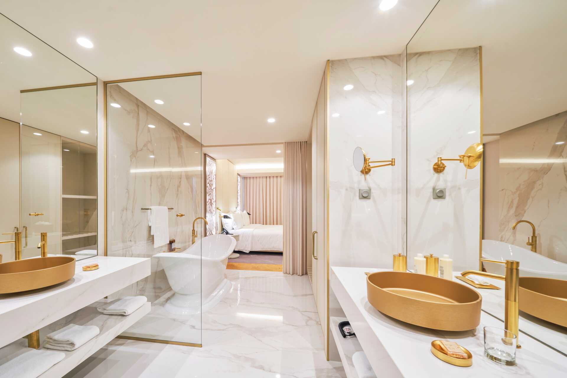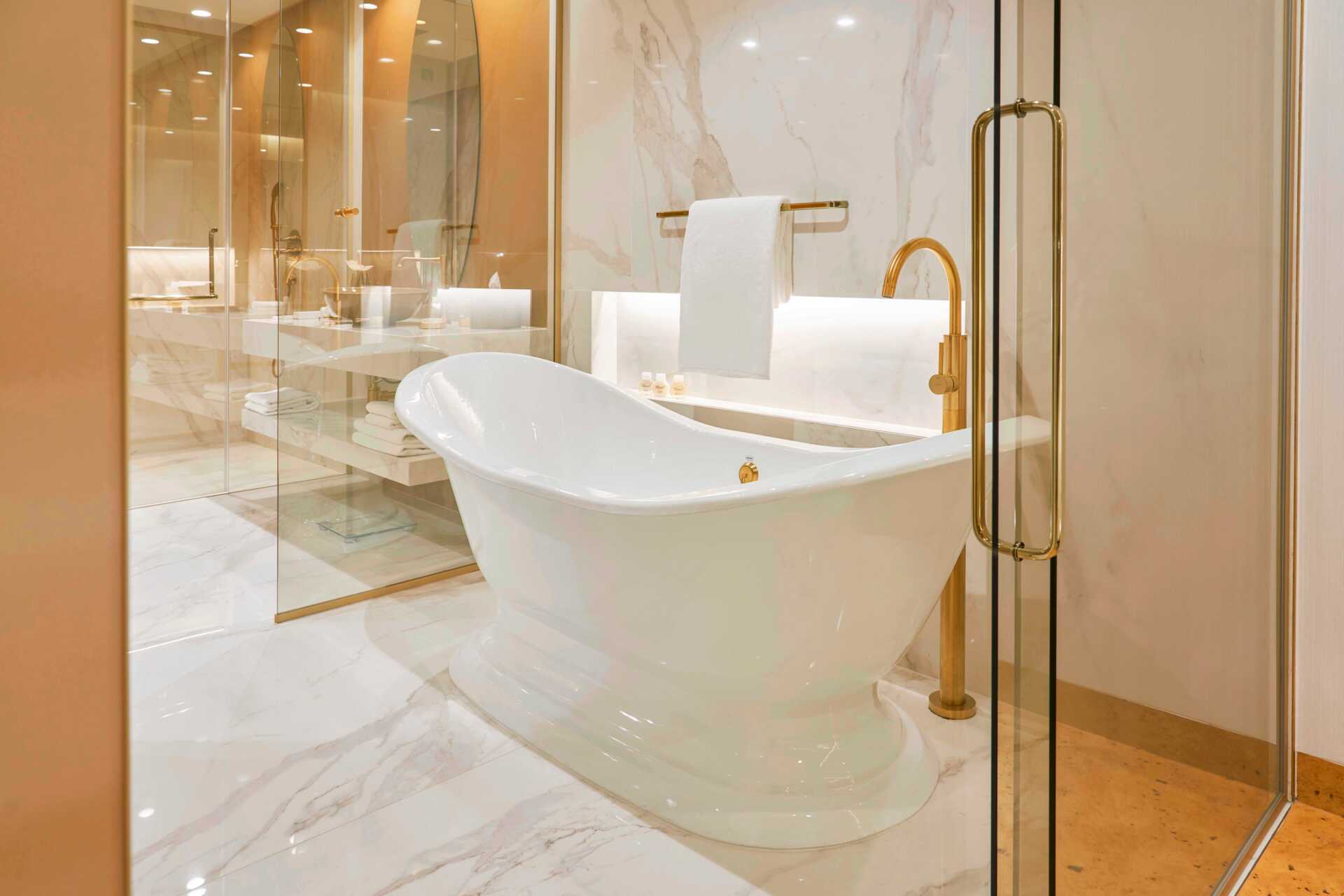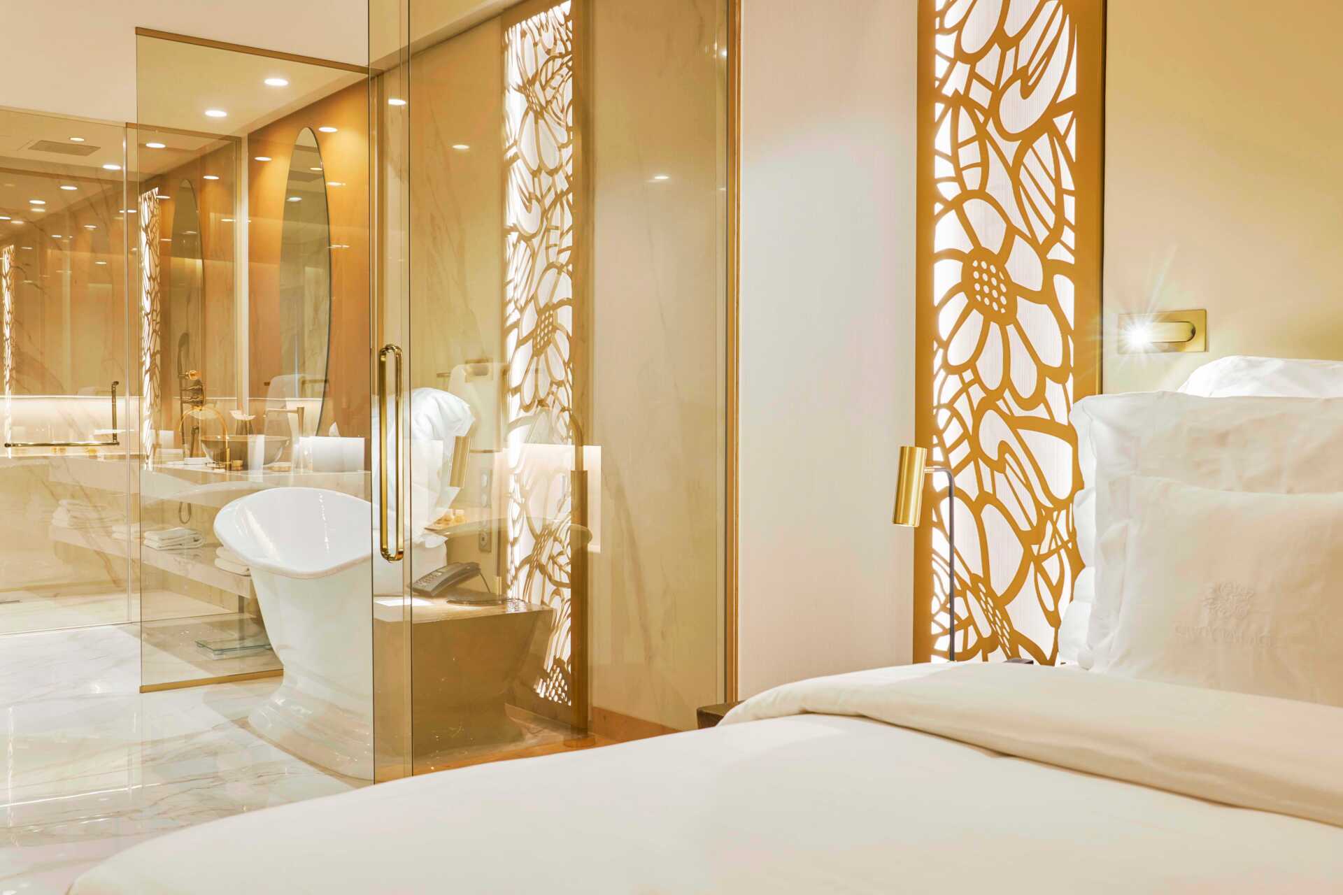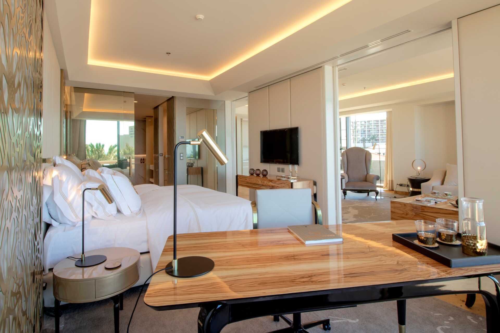 Suite med balkong og havutsikt. Suiten består av et soverom og en stue med skyvedører, sofa og spiseplass. En dobbeltseng eller to enkeltsenger. Mulig med en ekstraseng i sovesofa. Putemeny. Wifi, luftkondisjonering og safe inkludert. Minibar. Vannkoker samt kaffe og te. Nespresso kaffemaskin, kapsler inkludert og etterfylles hver dag. TV. Strykejern og strykebrett. Badekåper og tøfler Hårføner. Badet består av en del med badekar og dusj, en del med to servanter og en del med separat dusj og separat wc. Rengjøring 7 ggr/uke.