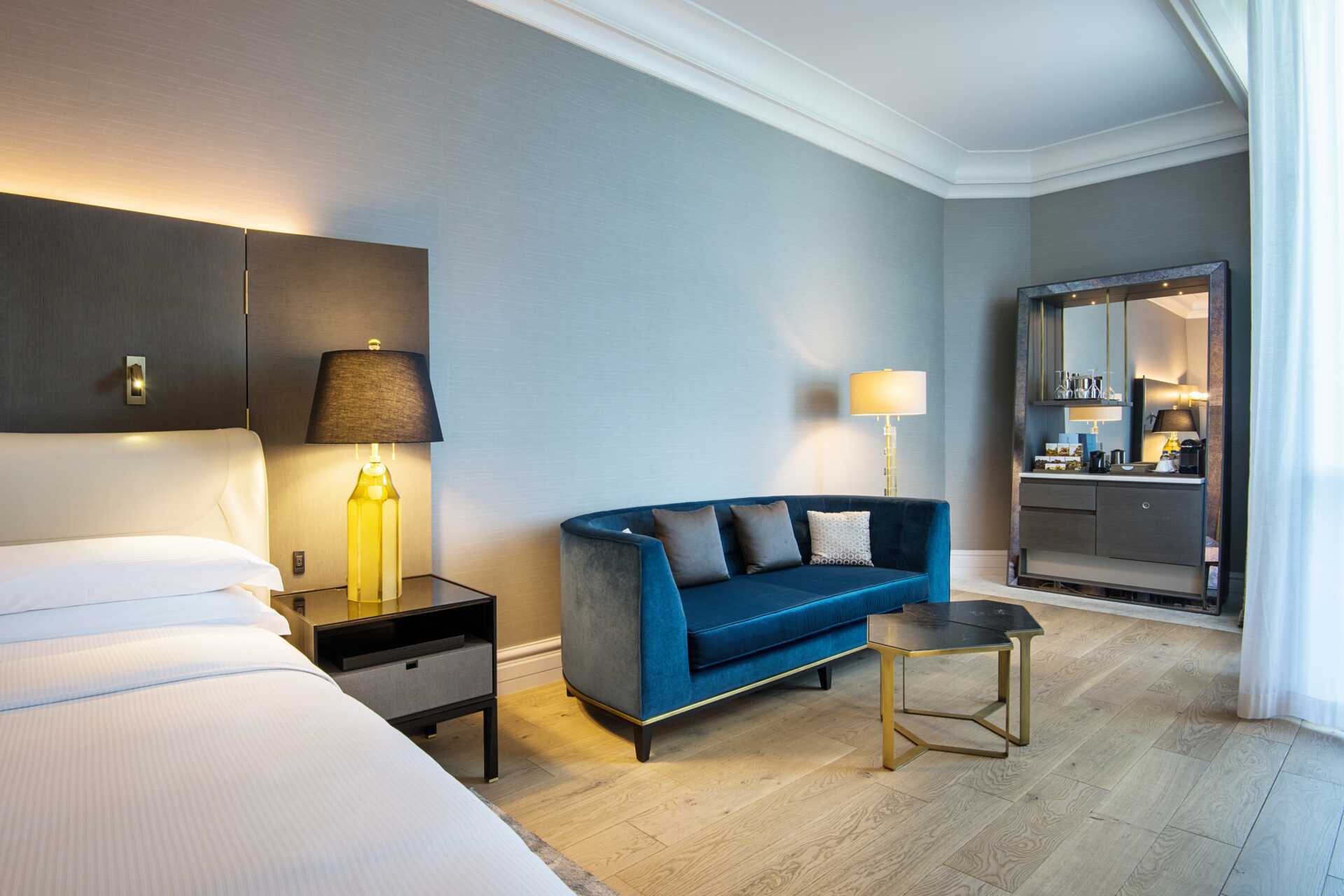 Deluxerom med balkong og havutsikt. En dobbeltseng eller to enkeltsenger. Mulig med ekstraseng i feltseng. Wifi, luftkondisjonering og safe inkludert. Takvifte. Kjøleskap. Nespresso kaffemaskin. TV. Strykejern og strykebrett. Badekåper og tøfler Hårføner. Bad med badekar, separat dusj og wc. Rengjøring 7 ggr/uke.