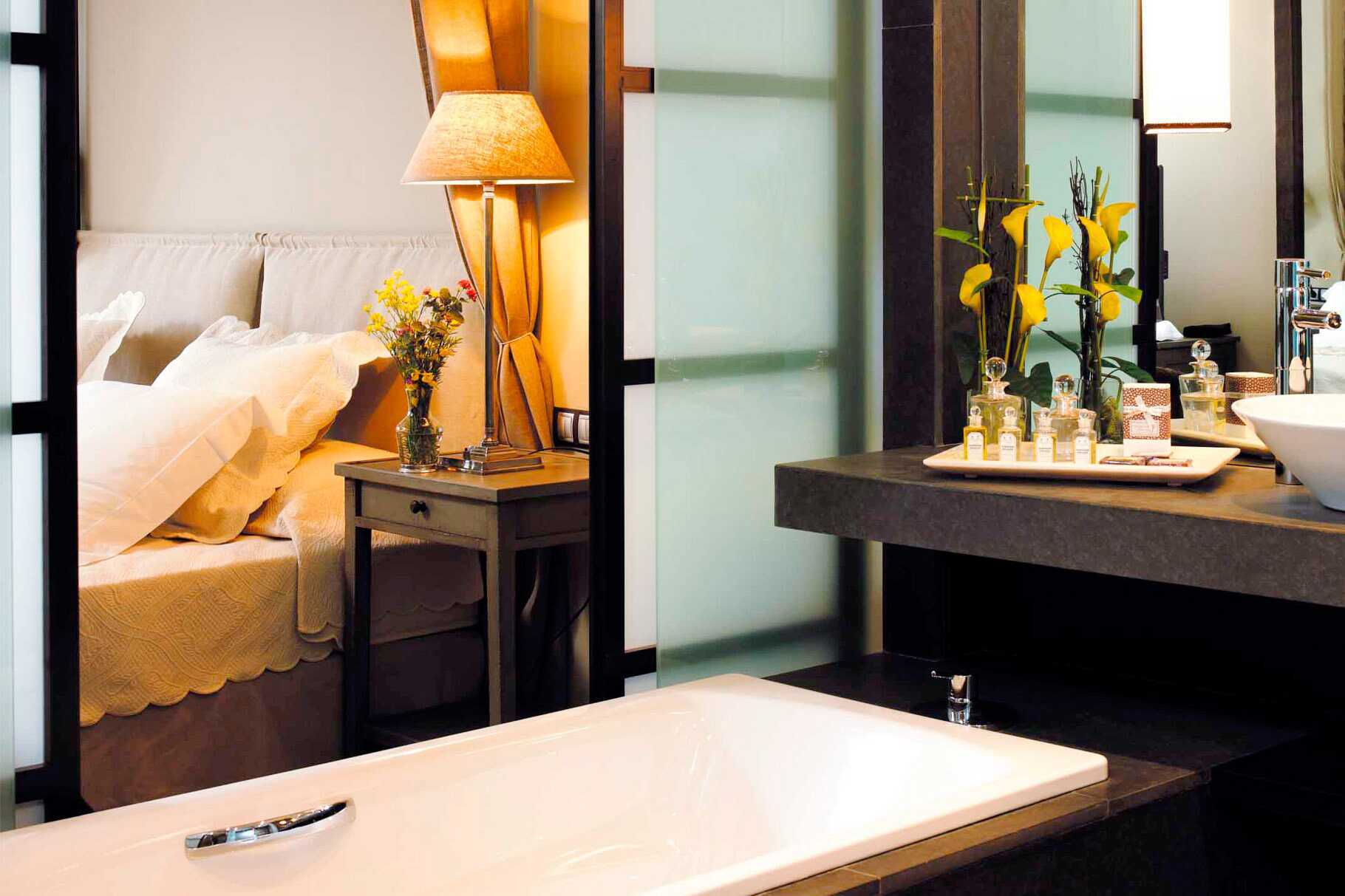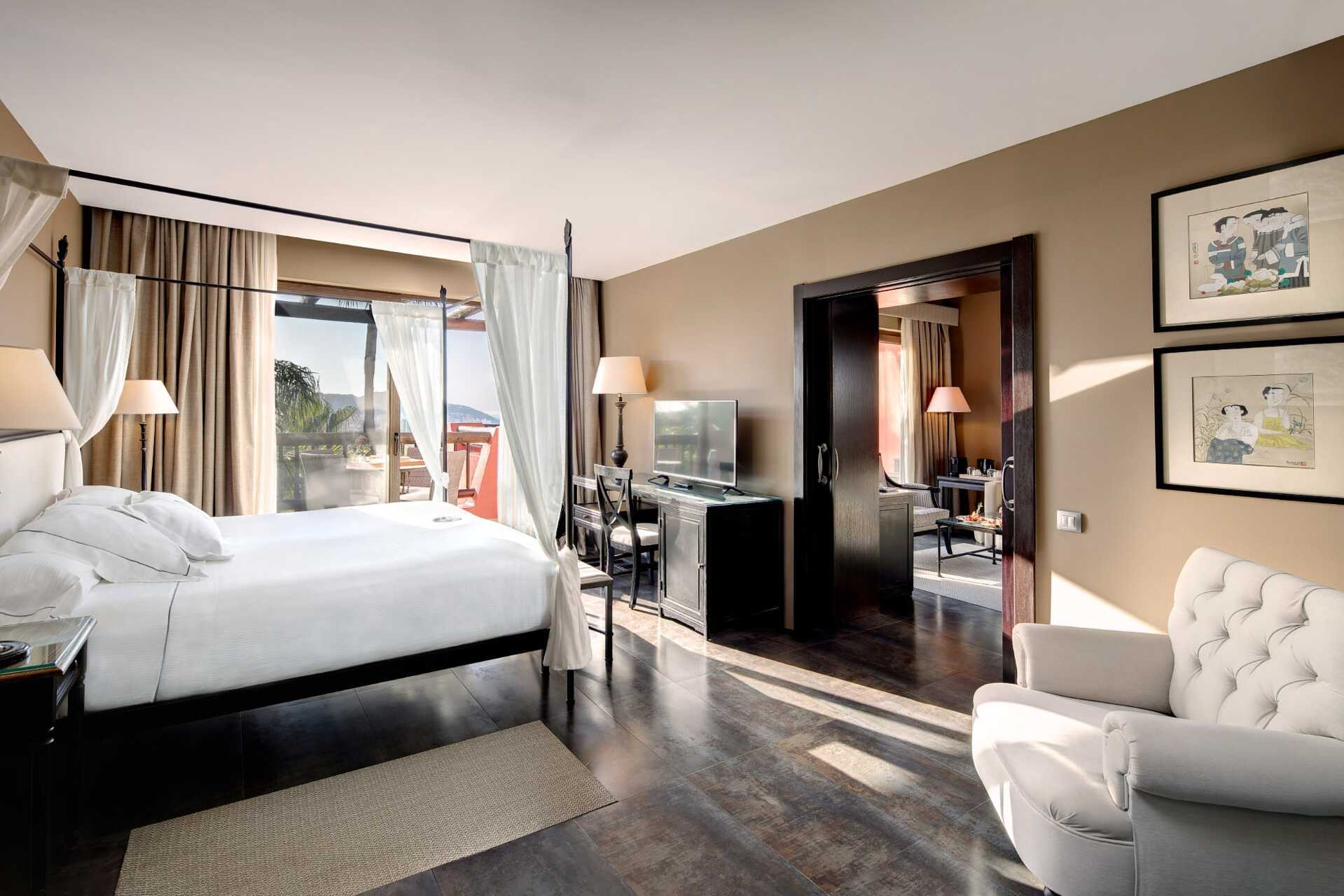Suite med balkong. Suiten består av et soverom og en stue. En dobbeltseng eller to enkeltsenger. Mulig med ekstraseng i feltseng. Wifi, luftkondisjonering og wifi inkludert. Minibar. TV i hvert rom. Hårføner. Bad med to servanter, badekar, separat dusj og wc. Rengjøring 5 ggr/uke.