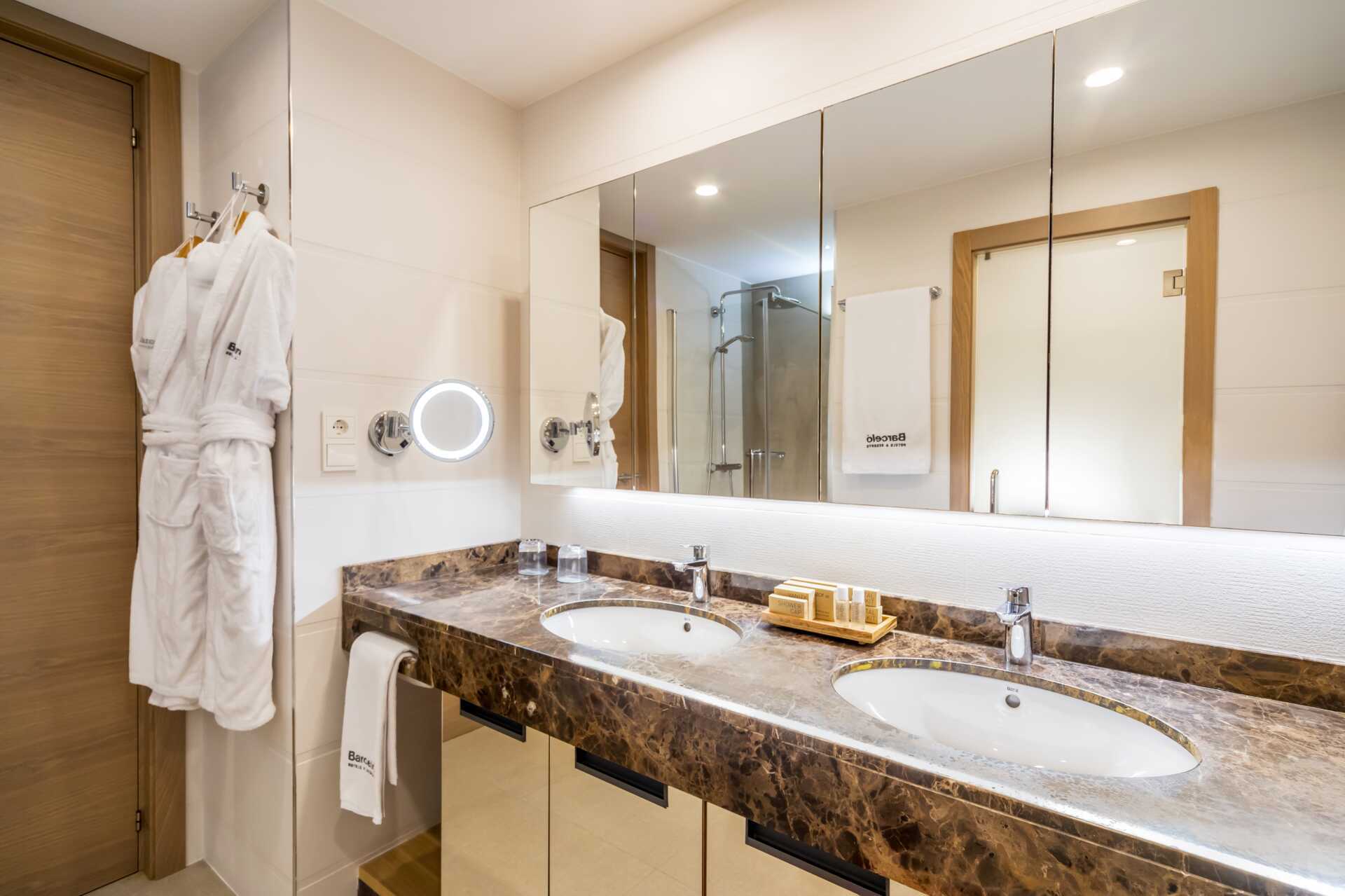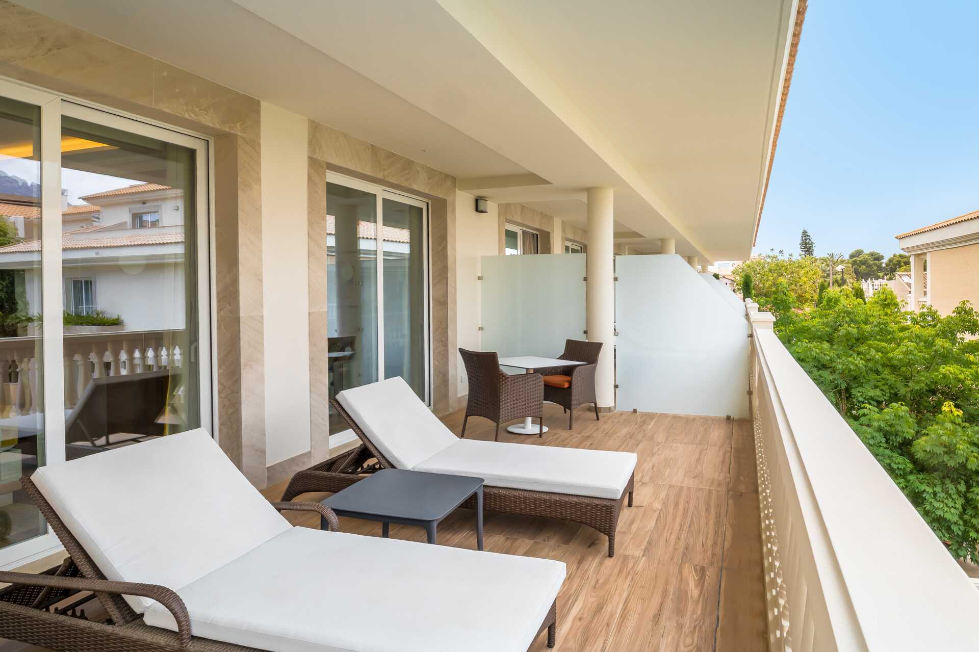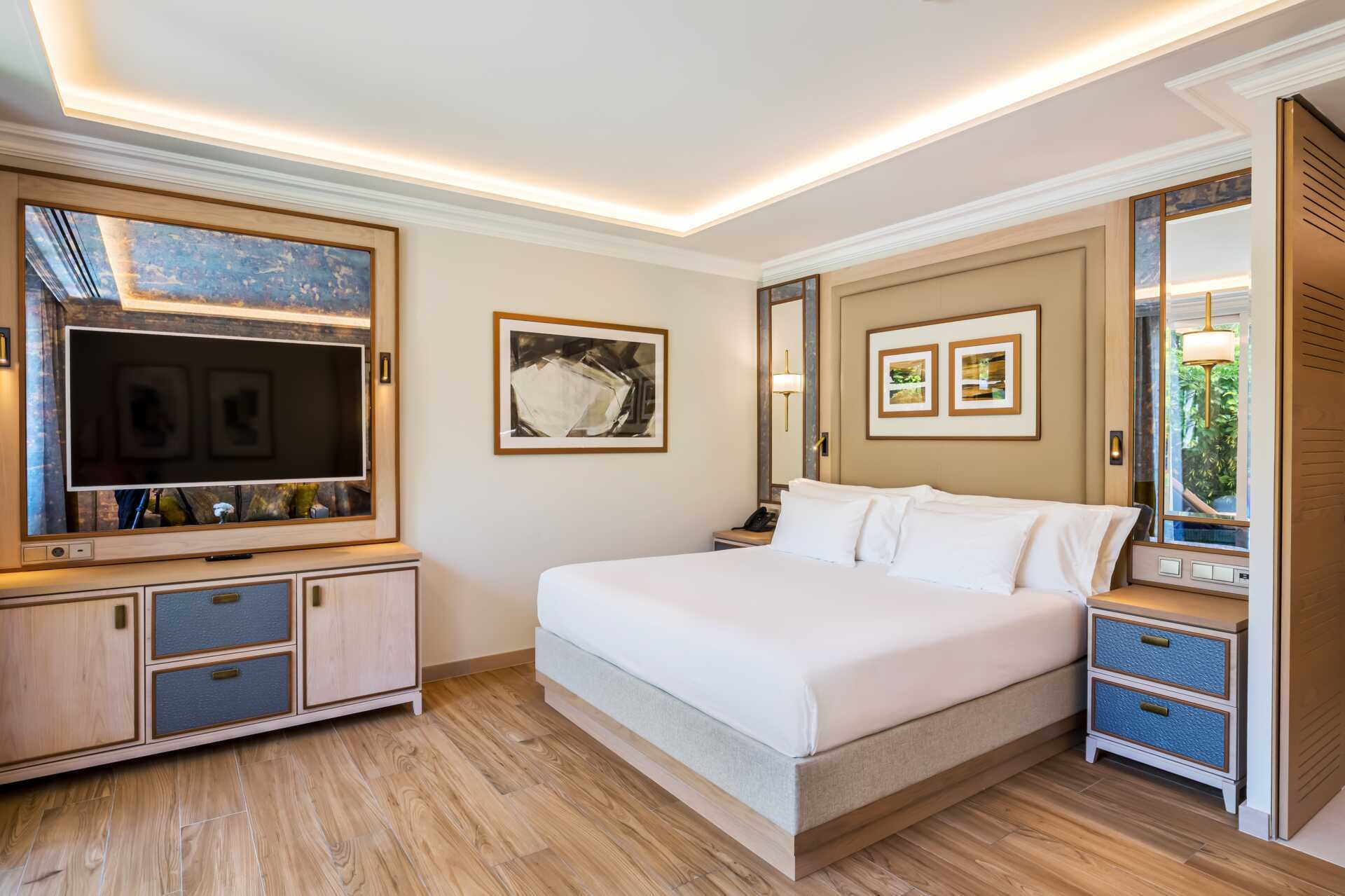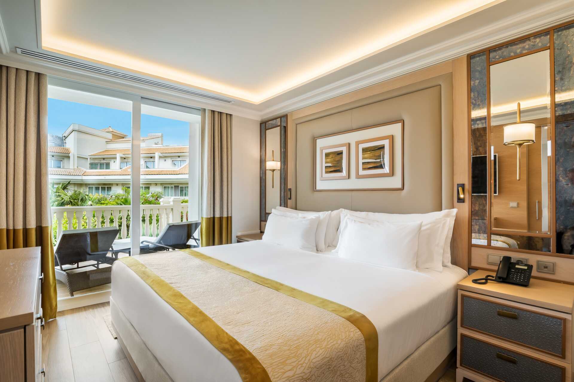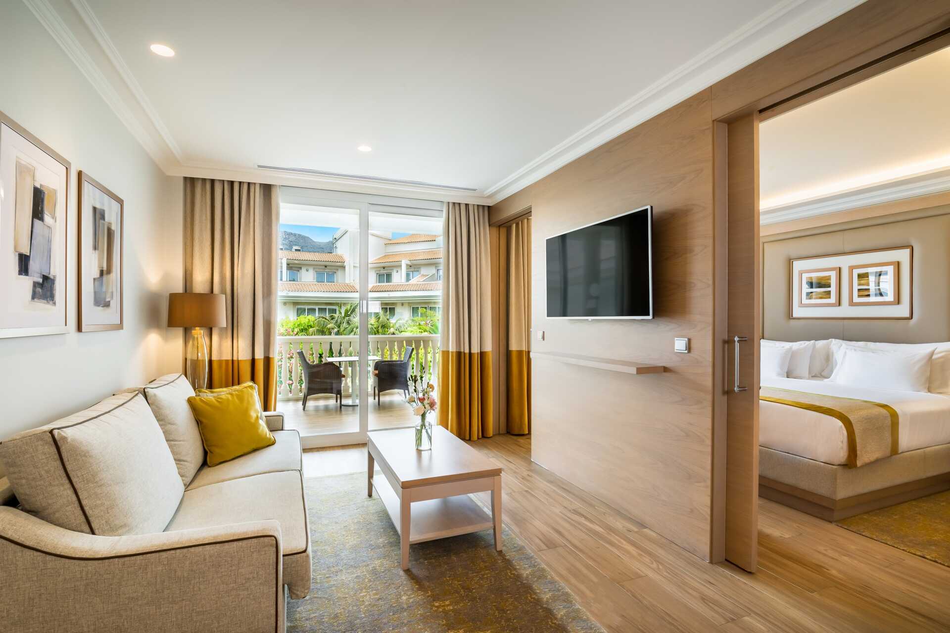 Juniorsuite med balkong eller terrasse. Juniorsuiten består av et soverom og en stue som kan skilles ad med en skyvedør. To enkeltsenger. Mulig med ekstrasenger i sovesofa. Wifi og luftkondisjonering inkludert. Safe mot avgift. Minibar. TV. Hårføner. Dusj og wc. Rengjøring 5 ggr/uke.