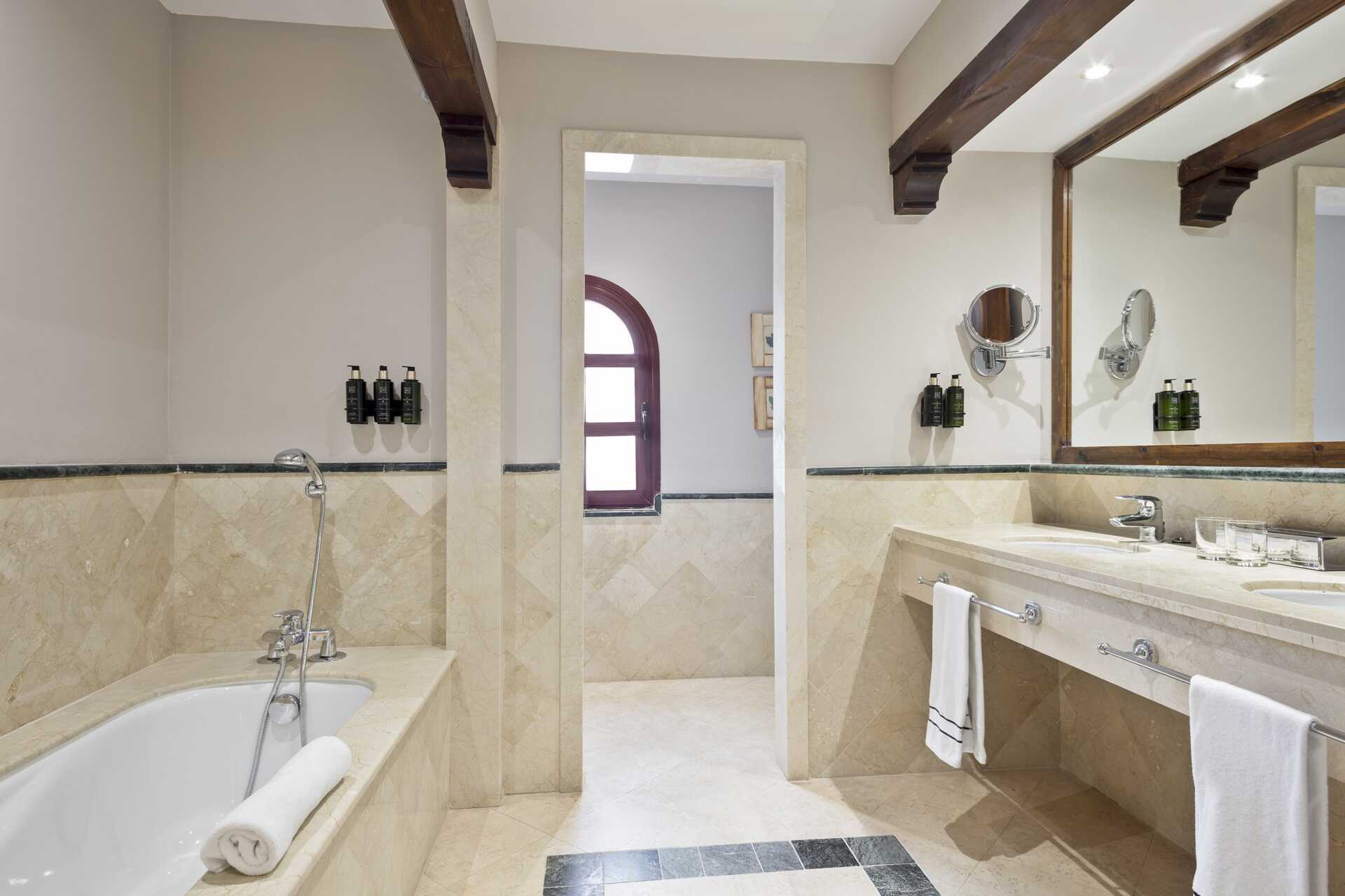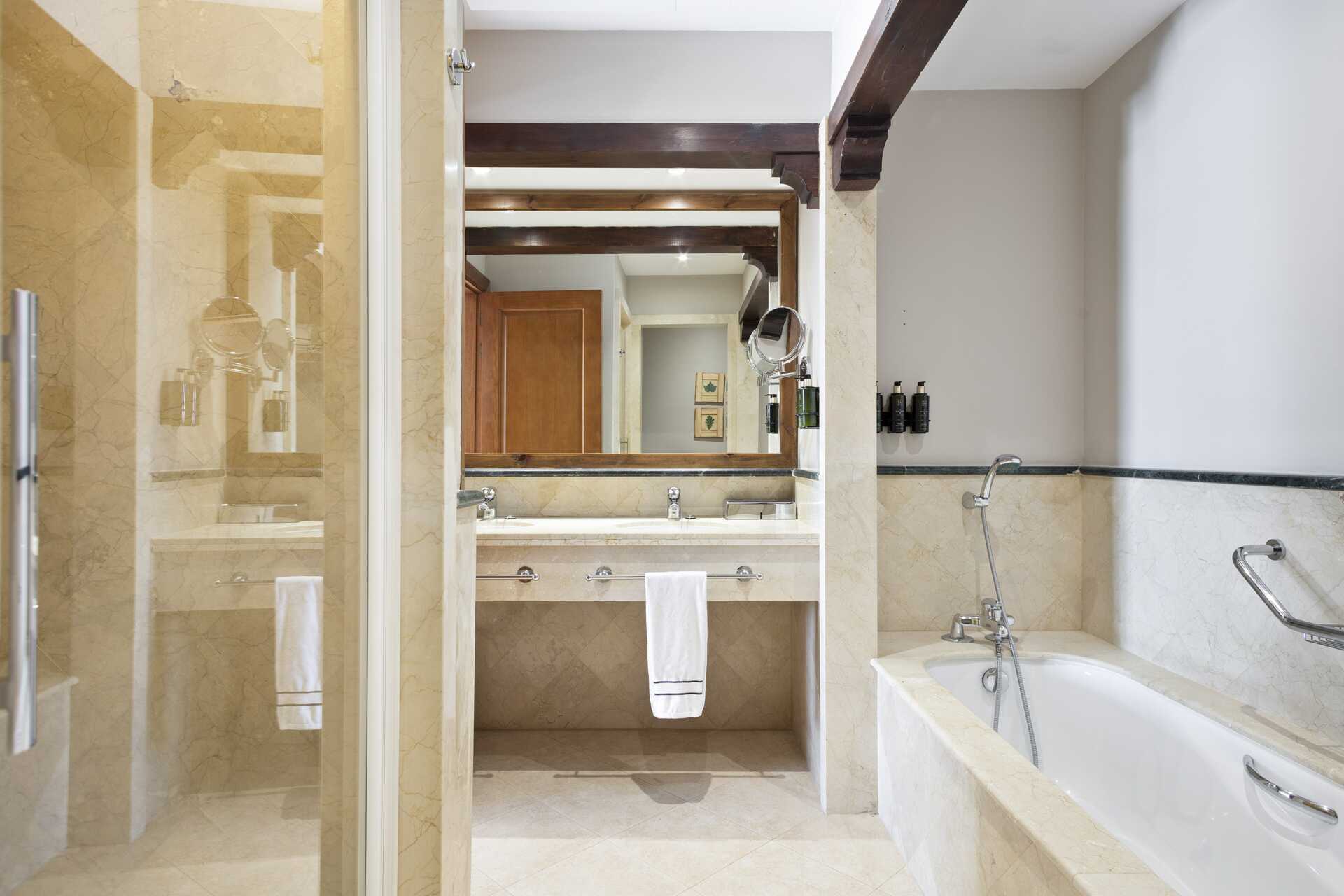 Suite med balkong eller terrasse. Suiten består av et soverom og en stue, det er ikke dør mellom rommene. En dobbeltseng eller to enkeltsenger. Mulig med en ekstraseng i sovesofa. Putemeny. Wifi og sentralstyrt luftkondisjonering inkludert. Safe mot avgift. TV. Badekåper og tøfler Hårføner. Badekar og wc. Baderomsartikler "The Ritual of Jing" av Rituals ® . Rengjøring 7 ggr/uke.