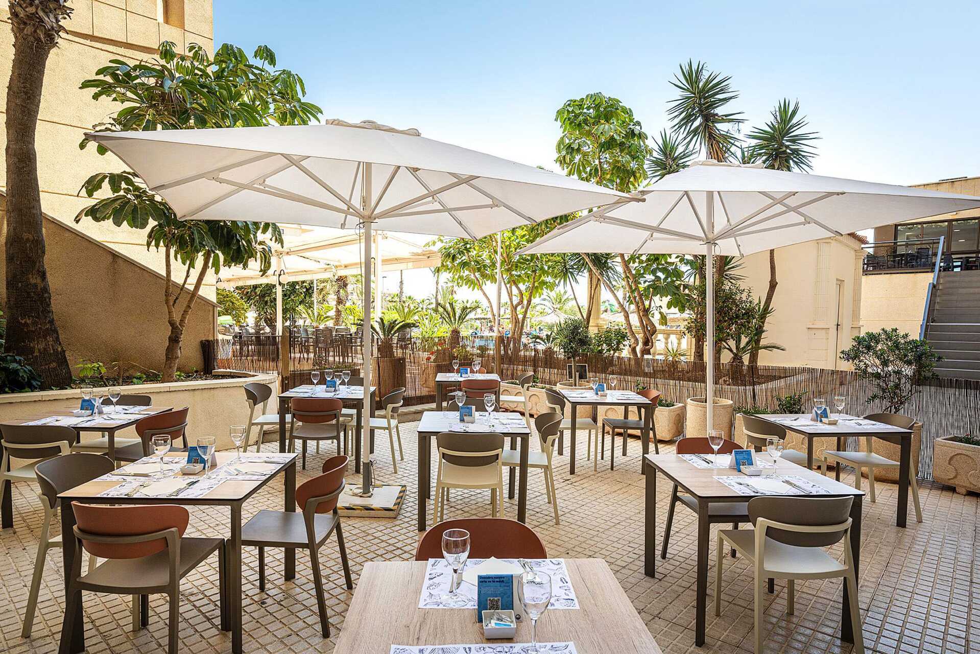 Hotellets restaurant serverer tradisjonelle middelhavsretter med lokale smaker.