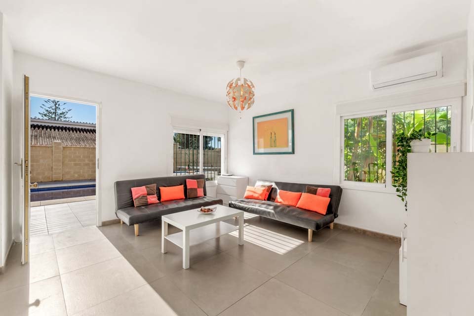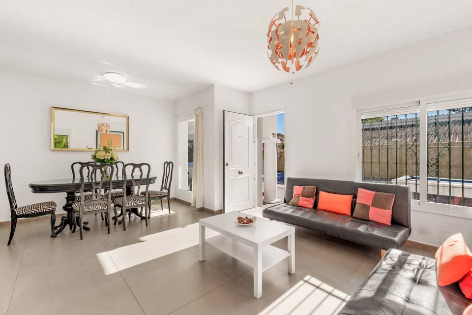 Den nydelige og romslige stuen har åpen planløsning og fører direkte til kjøkkenet, det perfekte stedet å prøve seg på å lage mat med autentiske spanske godbiter. Så snart hodet treffer de myke putene i de komfortable sengene, vil du sove godt, og få energi til å våkne om morgenen for en ny dag fylt med avslapning!