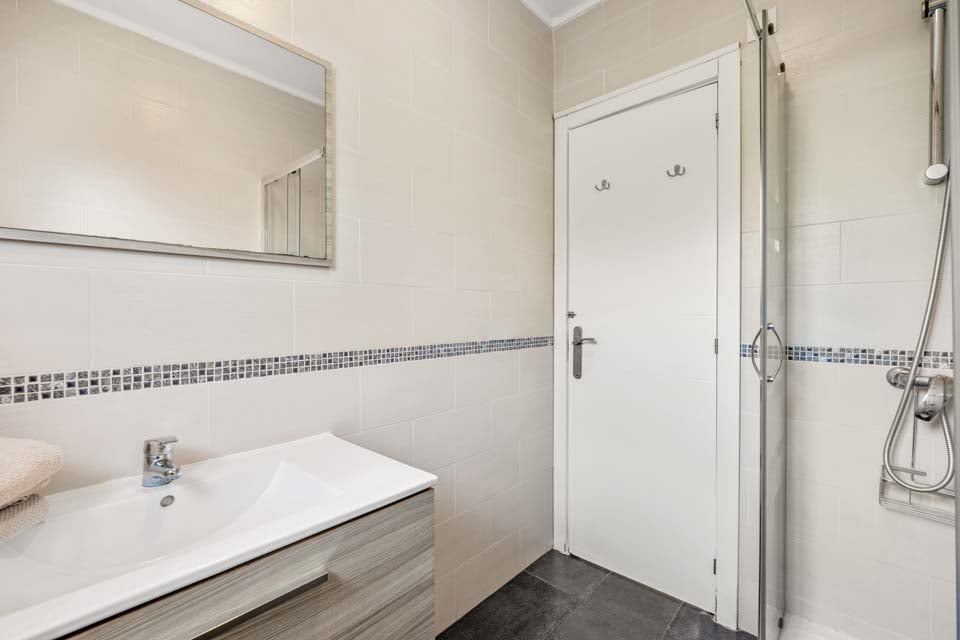 For å komme til villaen er det en 200 cm bred sti langs ett trinn. Inngangsdøren har en bredde på 80 cm, mens døren til terrassen også er 80 cm bred. Stien ned til bassengkanten er 102 cm bred. Terrassen er flat og flislagt, med plen. Det er en liten kant over terrassedøren. Dette er en villa i første etasje. Døren til hovedsoverommet er 70 cm bred, mens døren til badet er 70 cm bred. Døren inn til kjøkken/spisestue er 70 cm bred og døren inn til stuen er 173 cm bred. *Vær oppmerksom på at selv om vi har gjort vårt ytterste for å sikre at informasjonen som gis er nøyaktig, kan det forekomme feil. Hvis du trenger mer spesifikk informasjon om villaen, ikke nøl med å kontakte oss.