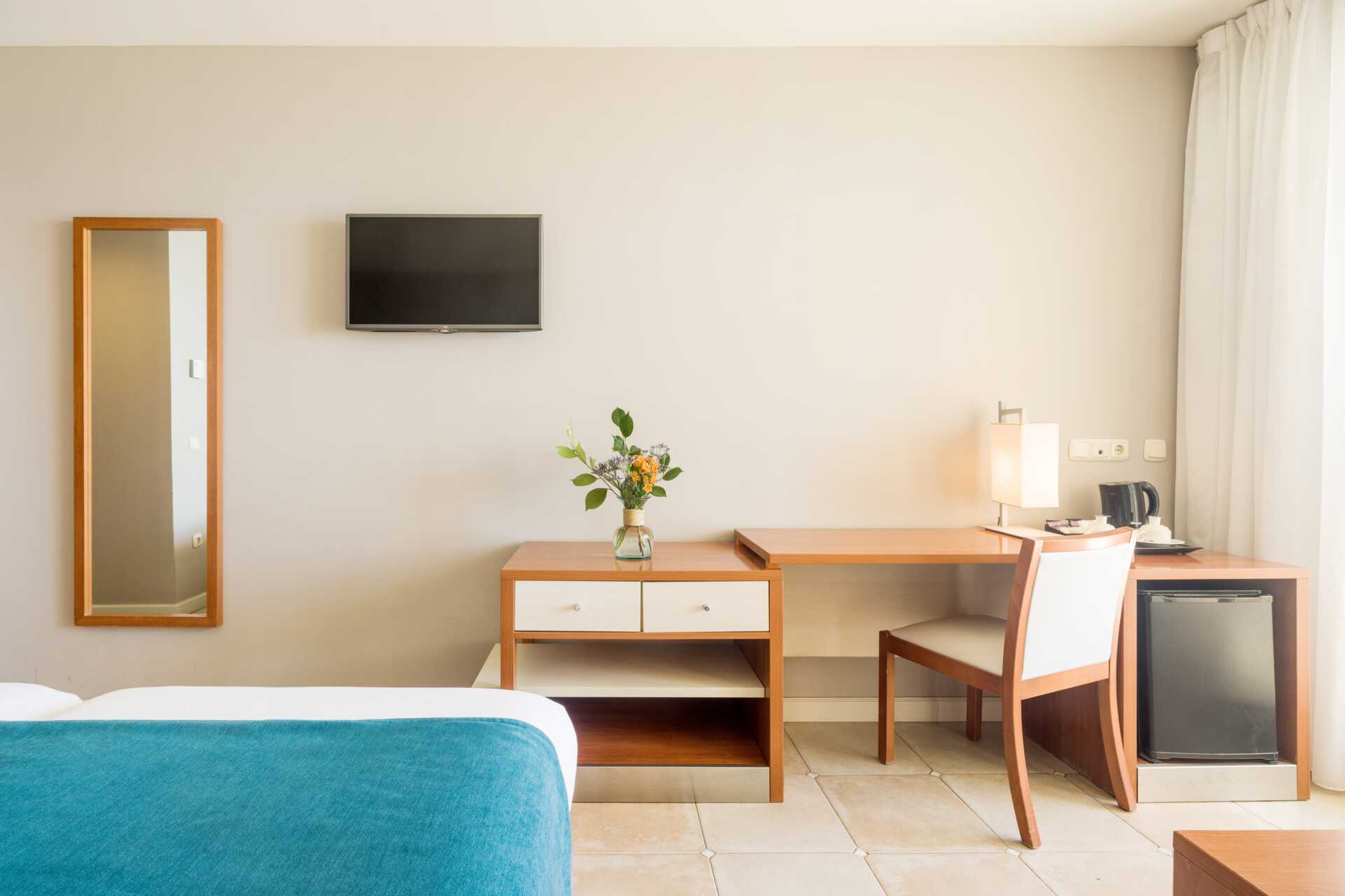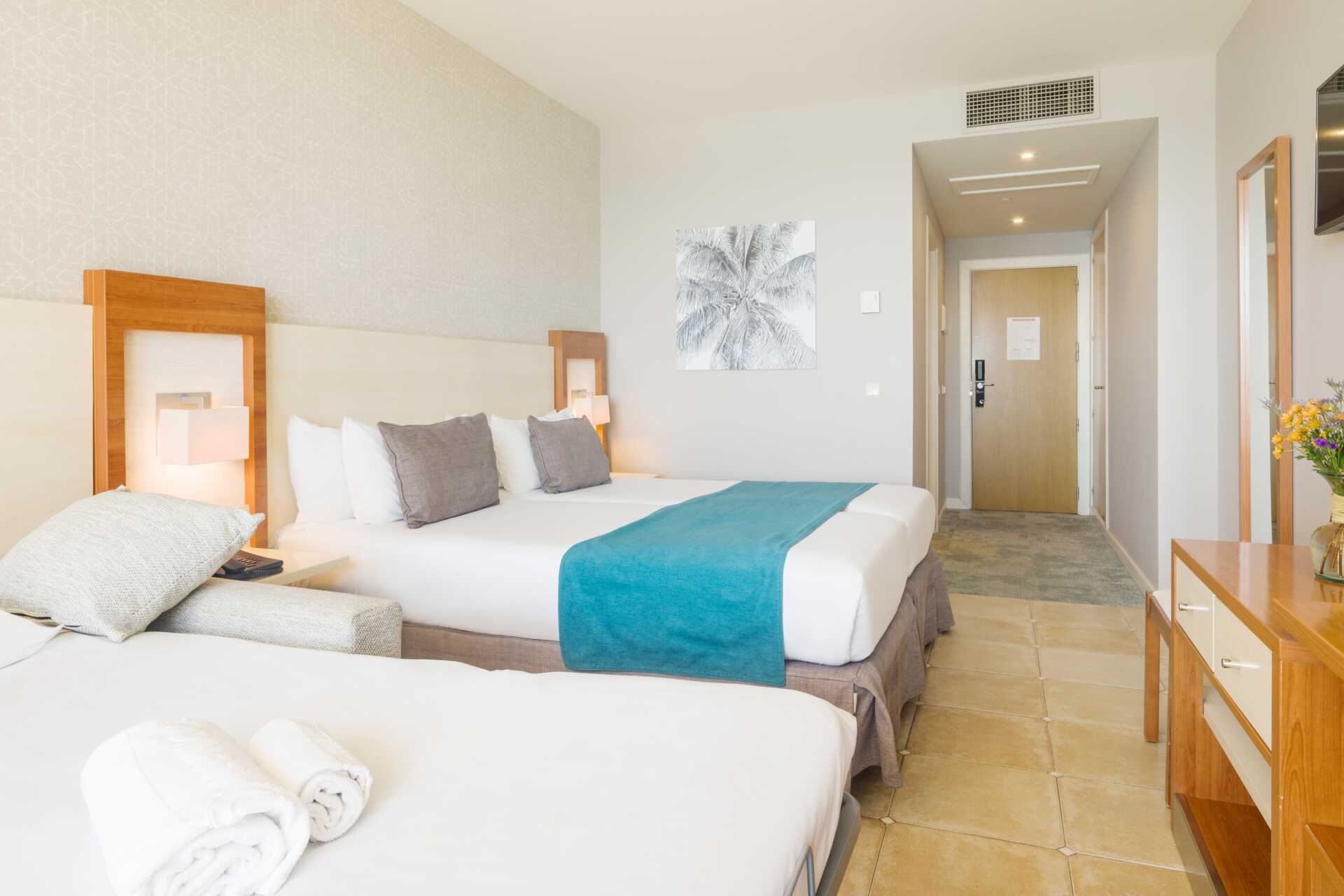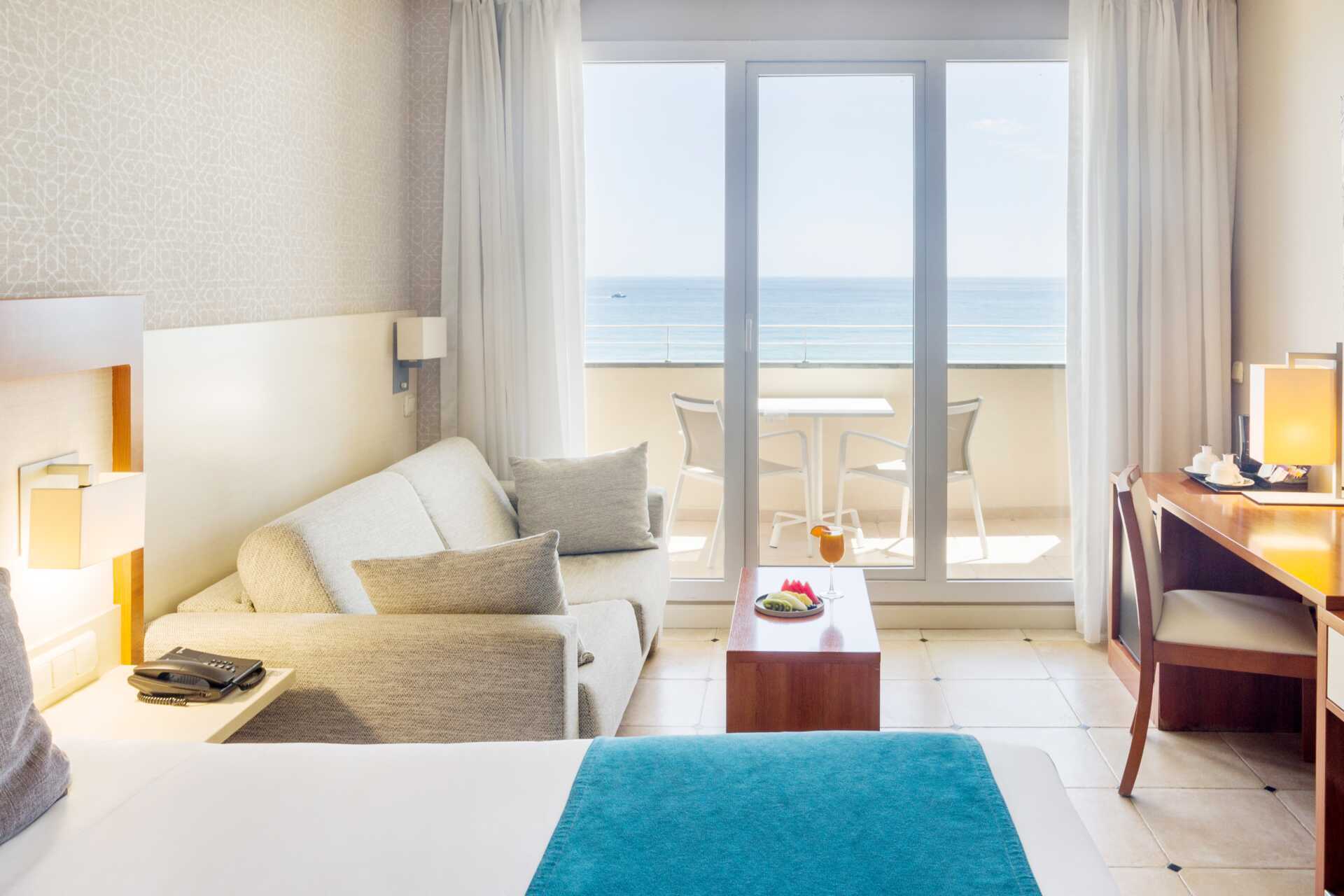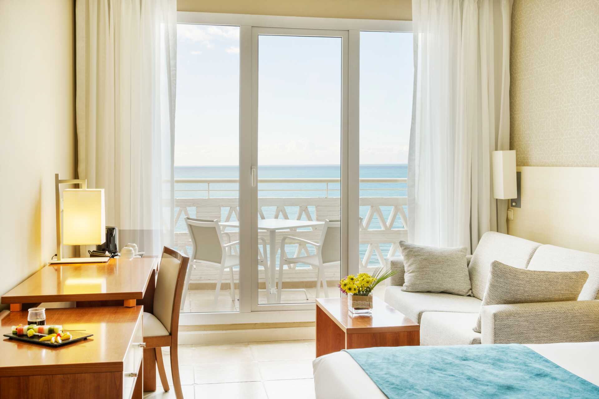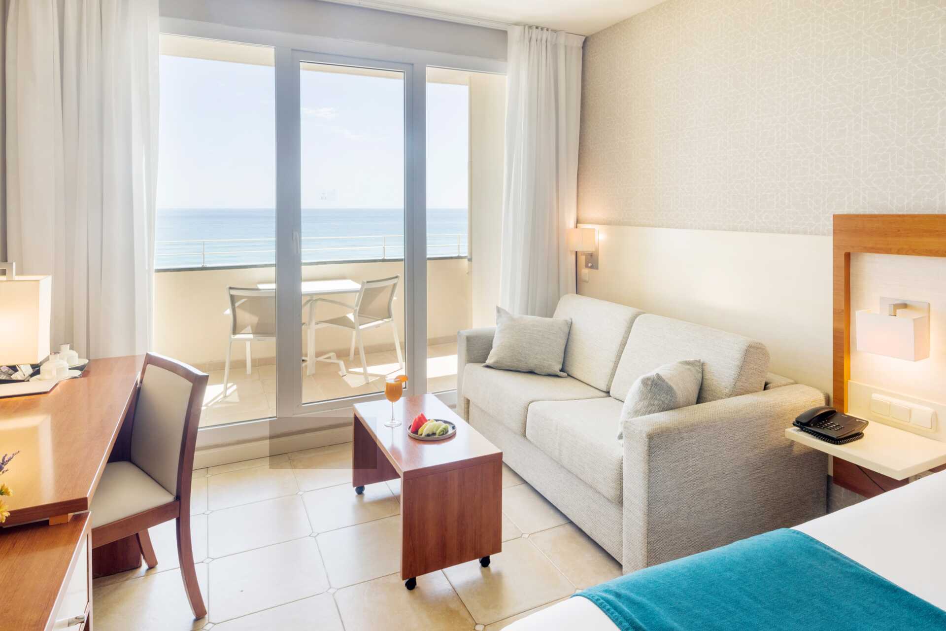 Dobbeltrom med balkong og havutsikt eller med balkong og begrenset havutsikt. En dobbeltseng eller to enkeltsenger. Mulig med ekstrasenger i sovesofa. Wifi, luftkondisjonering og safe inkludert. Kjøleskap. Vannkoker samt kaffe og te. TV. Hårføner. Bad med dusj og wc. Rengjøring 7 ggr/uke.
