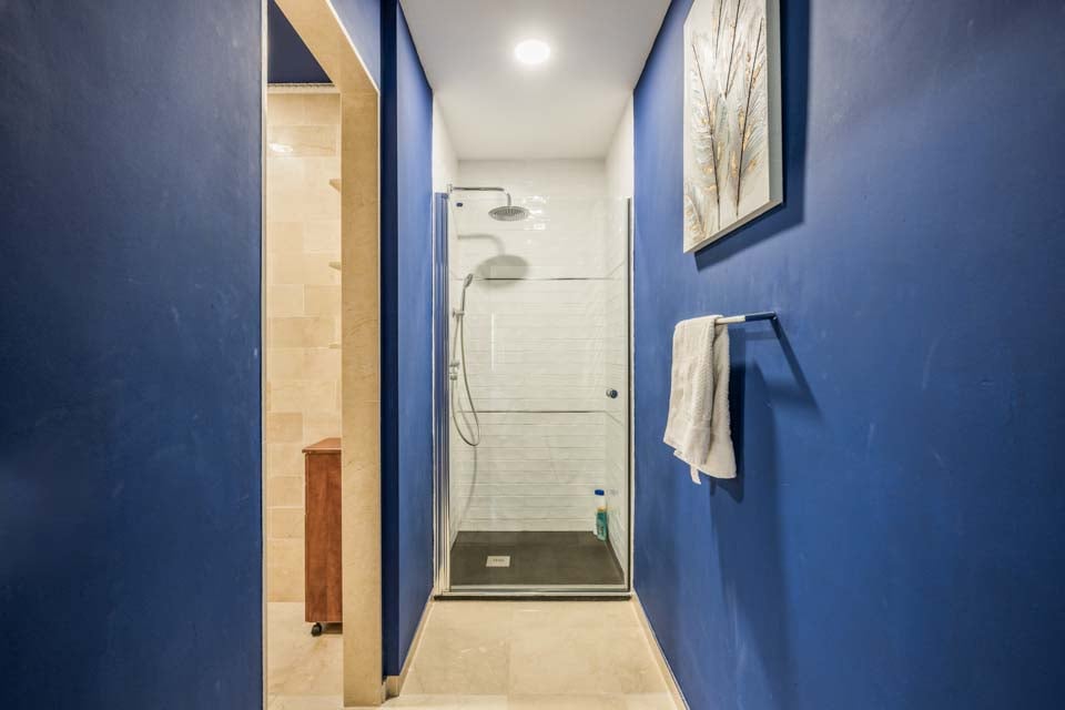For å komme til villaen er det en sti som er 122 cm bred sammen med fire trinn. Inngangsdøren har en bredde på 76 cm, mens døren til terrassen er 90 cm bred. Det er 13 trinn fra parkeringsplassen til bassengområdet. Når du kommer inn på terrassen via terrassedørene, er det tre trinn ned til bassenget og plenområdet. Bassengområdet er lite og smalt. Dette er en villa i første etasje, hvor kjøkkendøren er 117 cm bred og stuedøren er 120 cm bred. Soveromsdørene er alle 68 cm brede, mens døren til hovedsoverommet med eget bad er 67 cm bred. Totalt sett er ikke denne villaen flat. *Vær oppmerksom på at selv om vi har gjort vårt ytterste for å sikre at informasjonen som gis er nøyaktig, kan det forekomme feil. Hvis du trenger mer spesifikk informasjon om villaen, ikke nøl med å kontakte oss.