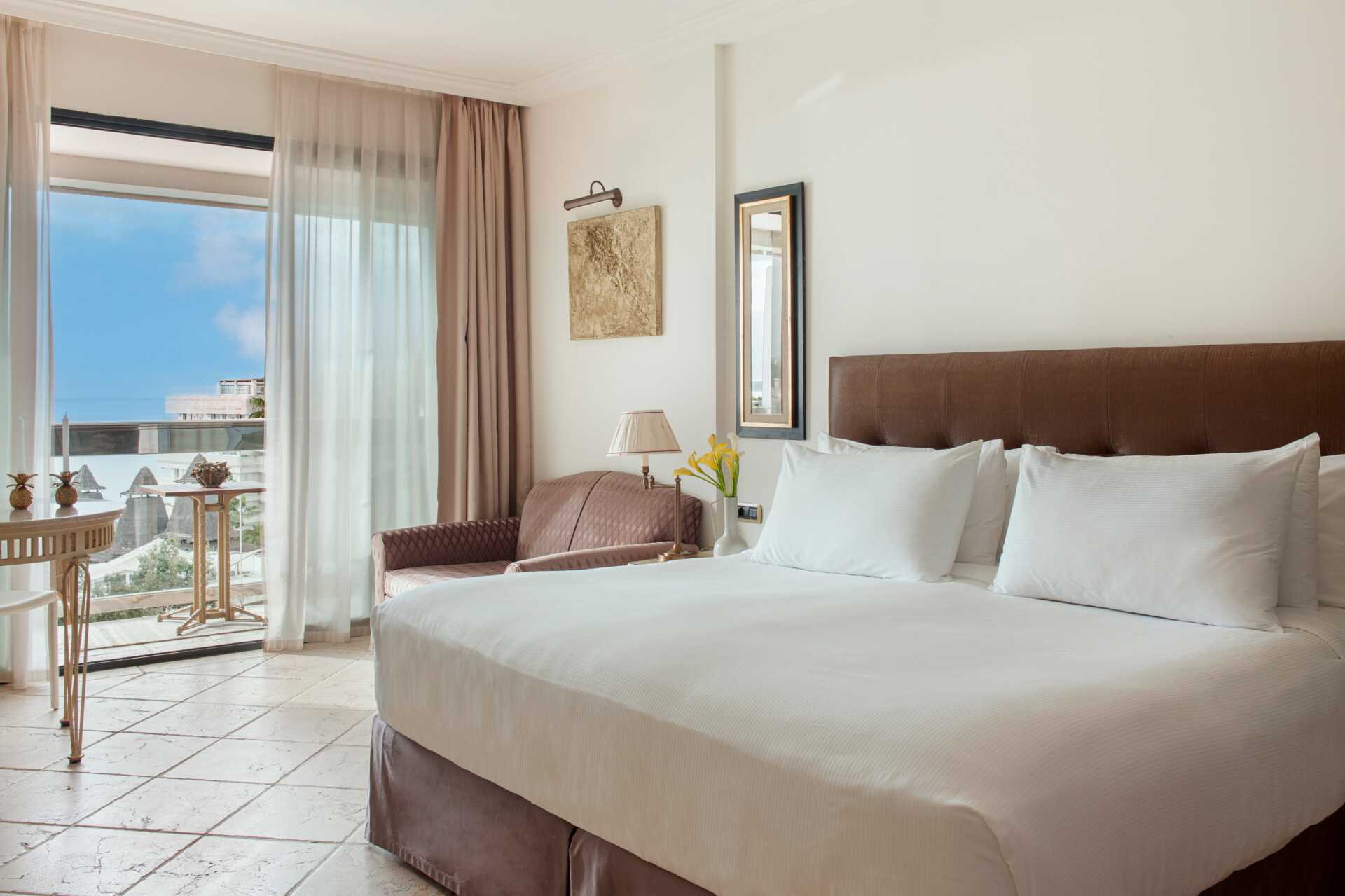 Superiorrom med balkong, noen med havutsikt. En dobbeltseng eller to enkeltsenger. Mulig med ekstrasenger i sovesofa. Wifi, luftkondisjonering og safe inkludert. Minibar. Vannkoker samt kaffe og te. TV. Tøfler. Hårføner. Badekar eller dusj samt wc. Rengjøring 7 ggr/uke. Barn under 2 år regnes inn i maksantallet i rommet.