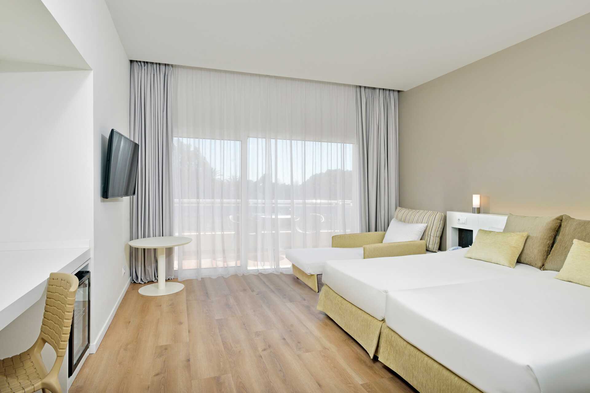 Dobbeltrom med balkong eller terrasse, noen med havutsikt og noen med begrenset havutsikt. En dobbeltseng eller to enkeltsenger. Mulig med en ekstraseng i sovesofa. Wifi, luftkondisjonering og safe inkludert. Kjøleskap. TV. Hårføner. Badekar eller dusj samt wc. Rengjøring 7 ggr/uke.