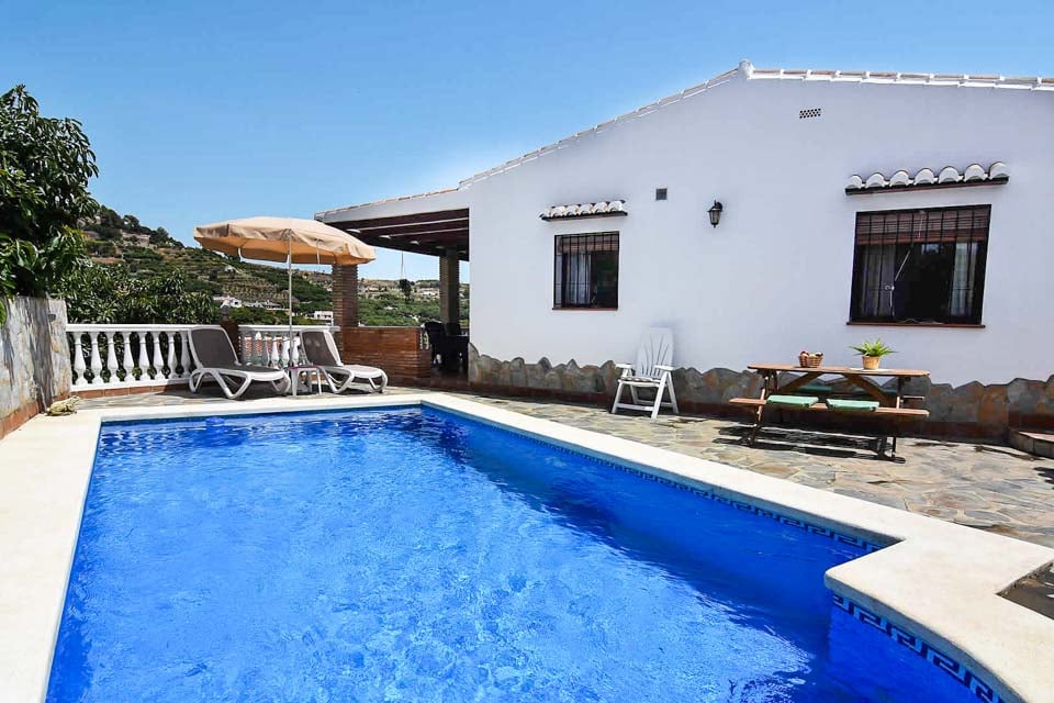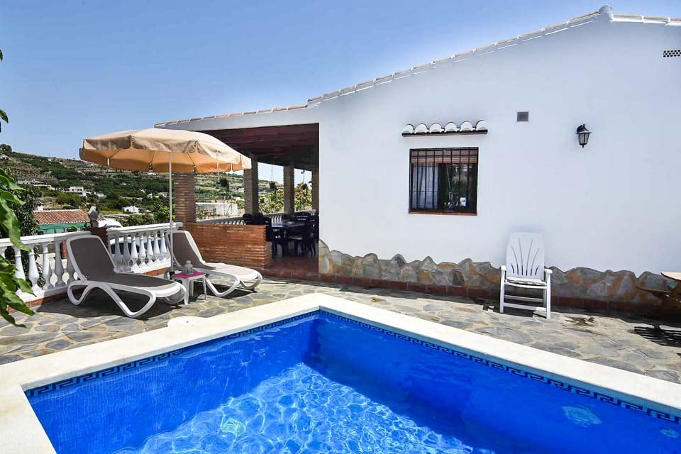 Denne sjarmerende villaen ligger høyt oppe i åsene i Nerja, og tilbyr avslapning for opptil fire gjester. Villaen er flott for par eller små bookinger, og har to koselige soverom, begge med klimaanlegg for å sikre et komfortabelt opphold selv på varme sommerkvelder. Den tradisjonelle designen utstråler varme og karakter, med rustikke detaljer som glir sømløst inn i de naturlige omgivelsene.