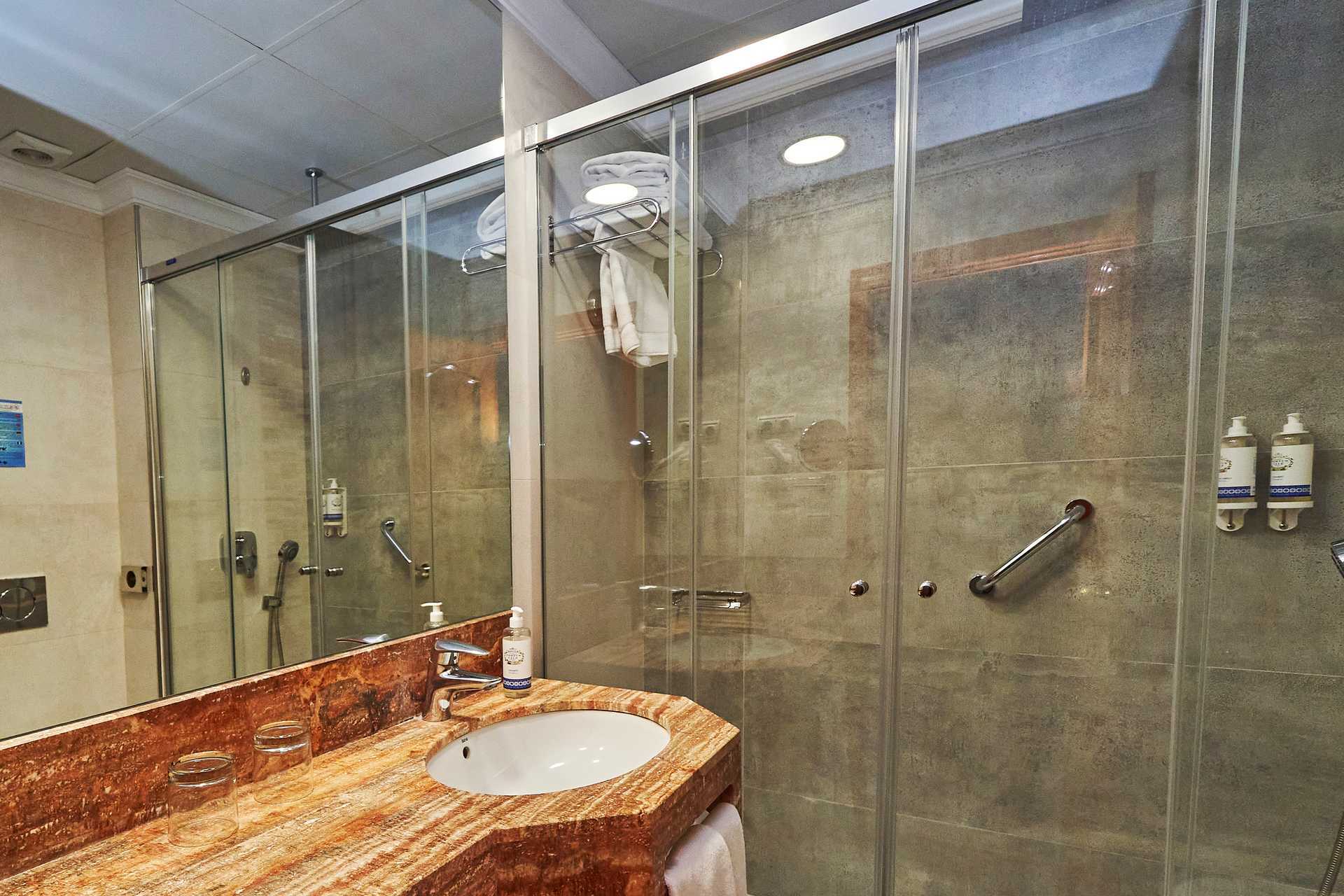 Dobbeltrom med balkong og havutsikt eller begrenset havutsikt, eller uten uteplass. En dobbeltseng eller to enkeltsenger. Mulig med ekstraseng i feltseng. Wifi, safe og luftkondisjonering inkludert. Minibar. TV. Badekar eller dusj samt wc, hårføner. Rengjøring 7 ggr/uke.